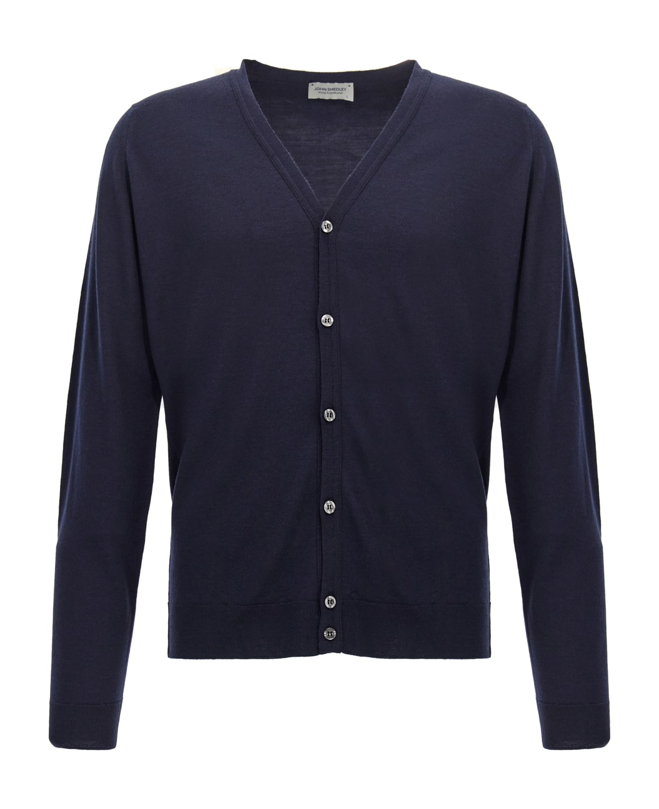 'Petworth' wool cardigan with button closure, long cuffed sleeves.