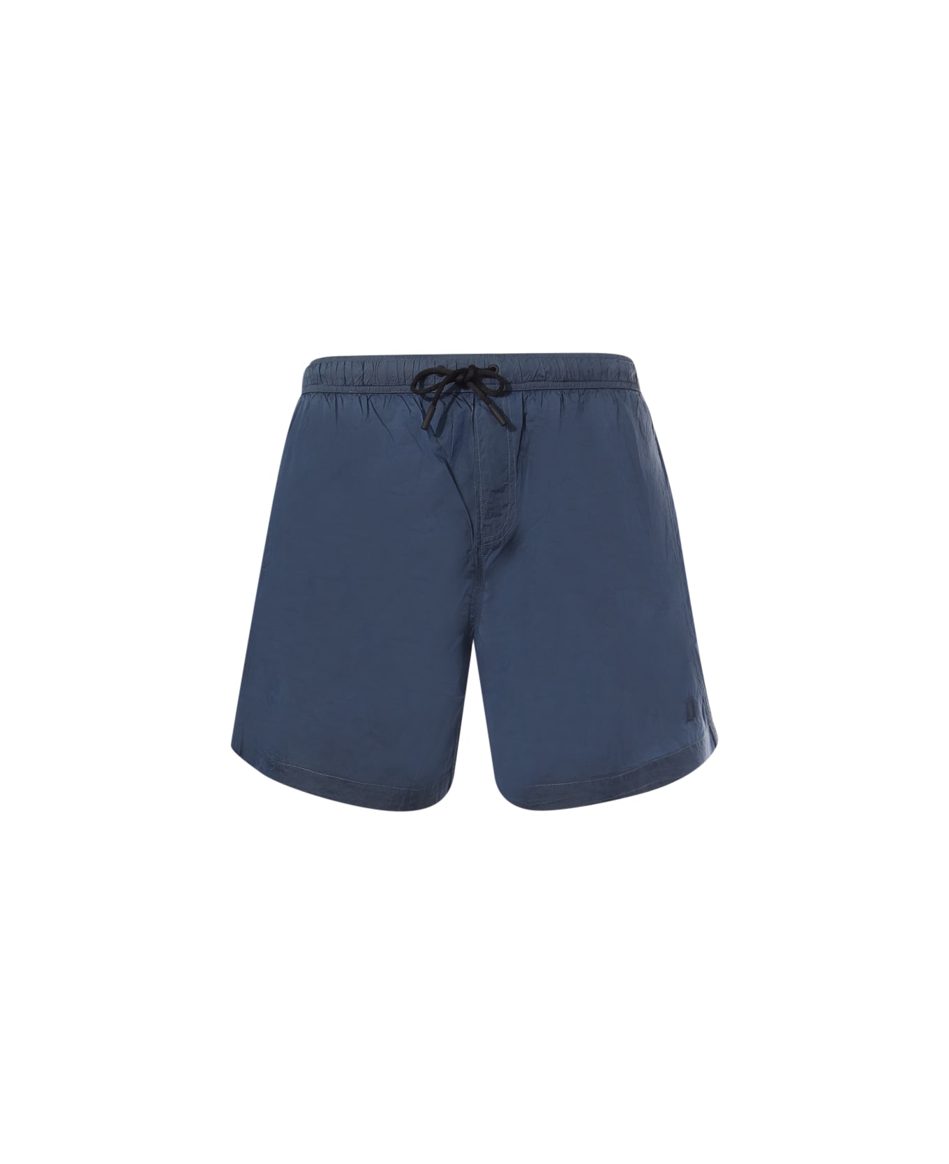 Elastic waist with drawstring, side pockets, back patch pocket with snap, metal Dondup logo. Regular Fit. Blue color. Composition: 100% Polyamide.