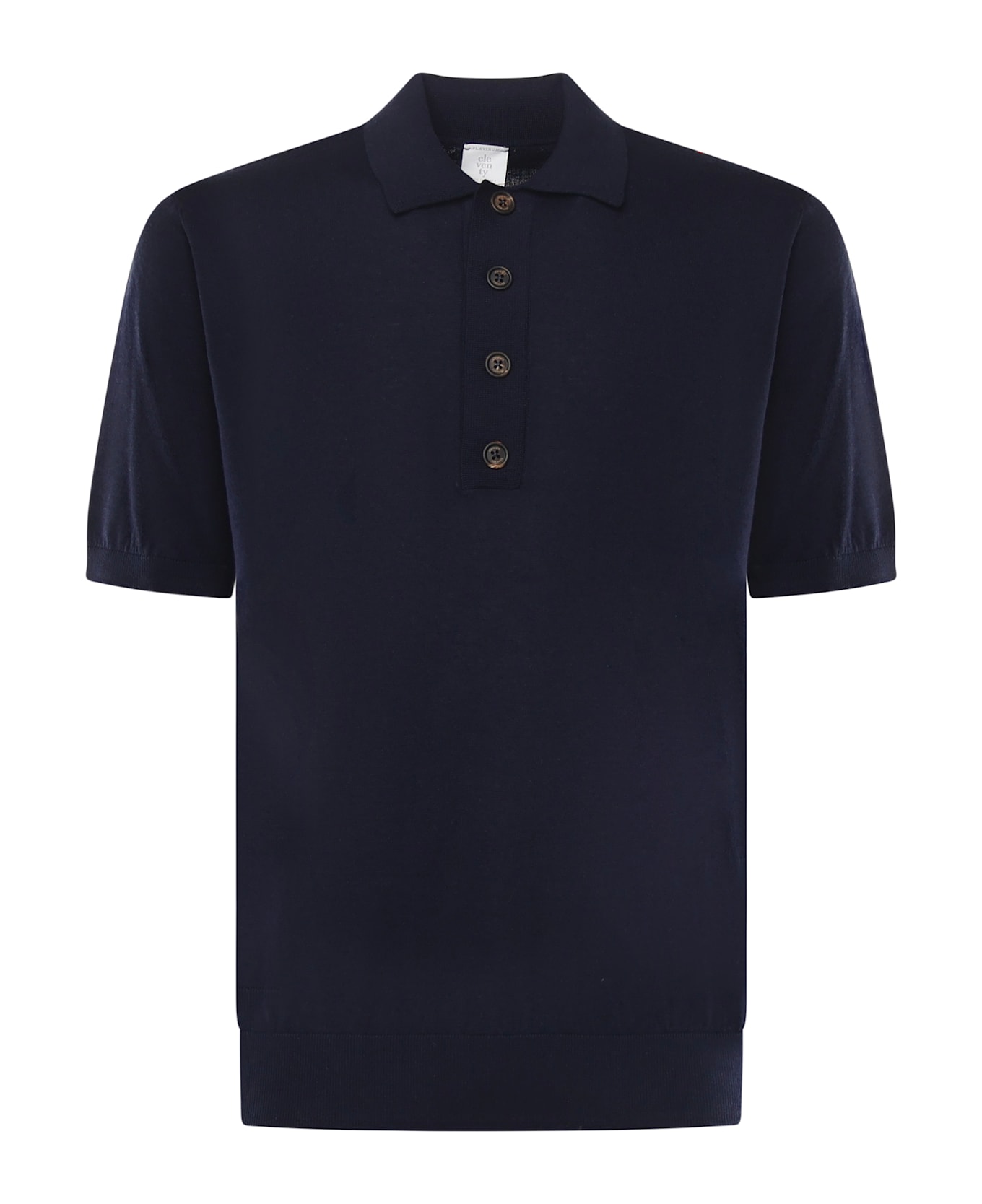 - Made of cotton and cashmere - 4-button closure - Classic collar - Ribbed trim - Short sleeves - Made in Italy - Size shown in photo is M - Color: Blue