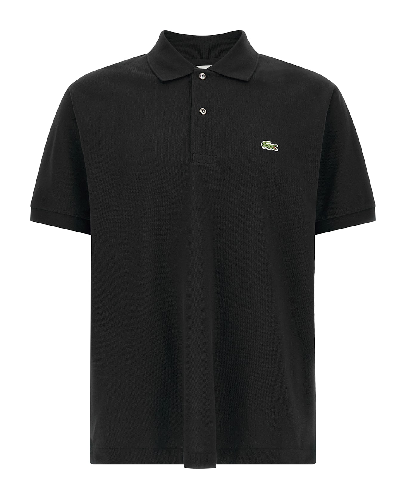 Cotton piqué polo shirt, front logo patch, collar and buttons, short sleeves, side vents.