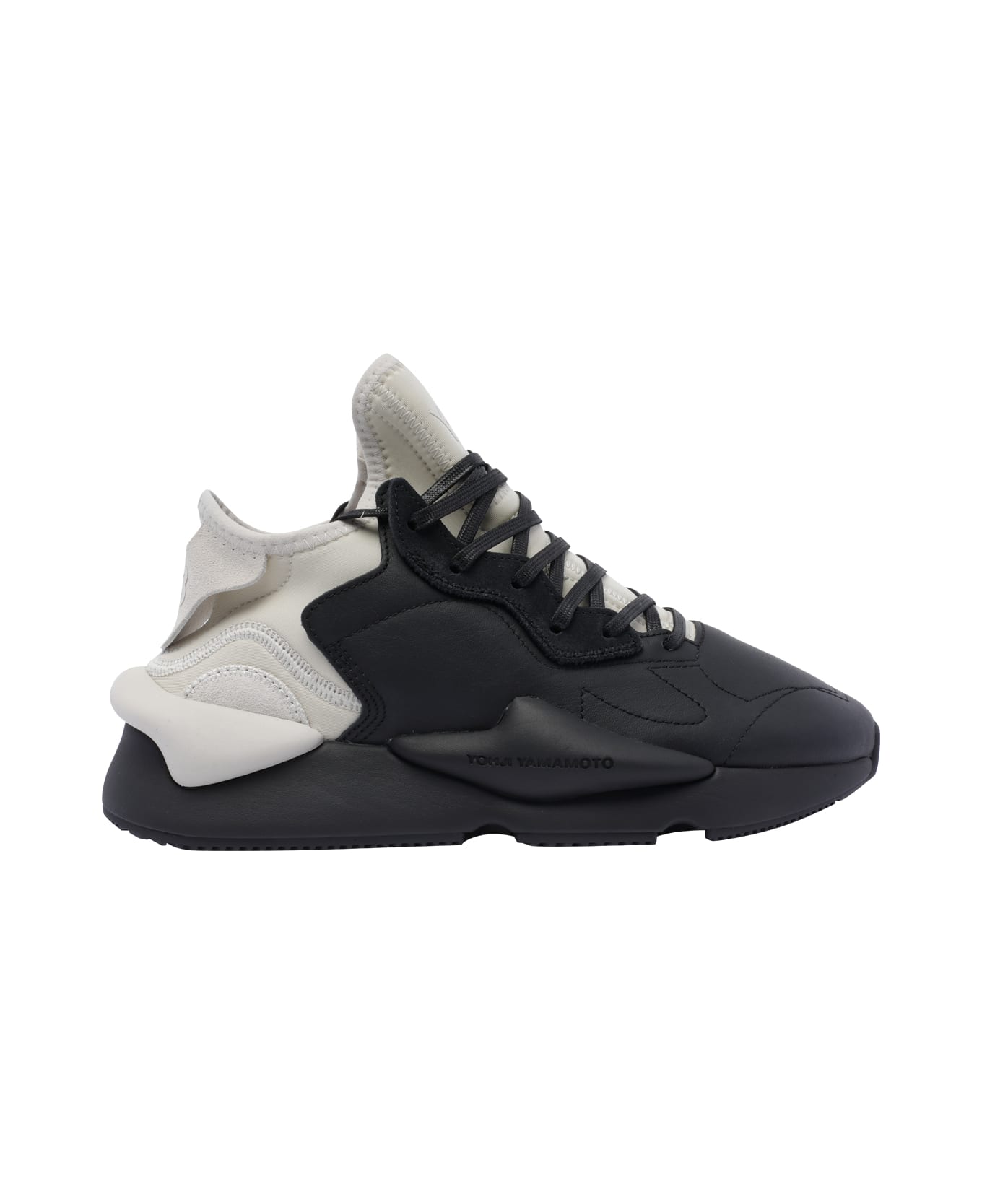Adidas Y-3 black Kaiwa sneakers, round toe, leather upper, laces closure, logo on the back
