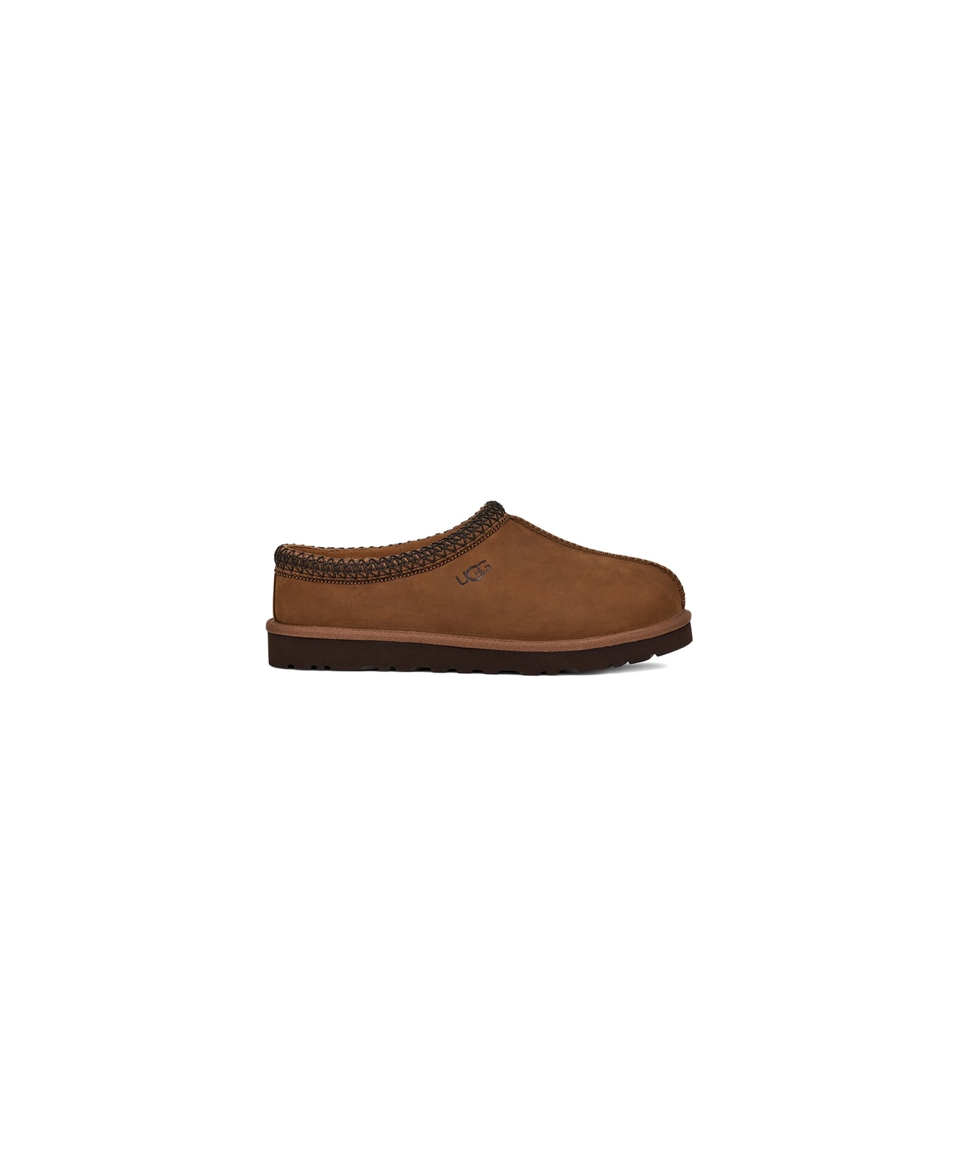 dark chestnut braided trim leather upper tonal logo rubber sole slip-on style