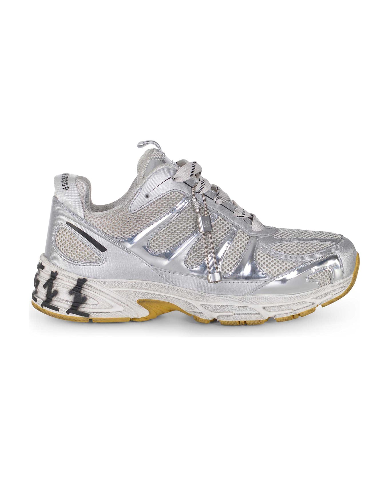 Sneakers 44 Label Group "Dragger" made of White/Silver fabric. Silver inserts. Lock on the side with logo. Lace-up. Contrasting sole with logo and worn effect. Label on the back with logo. 100% rubber sole 100% fabric