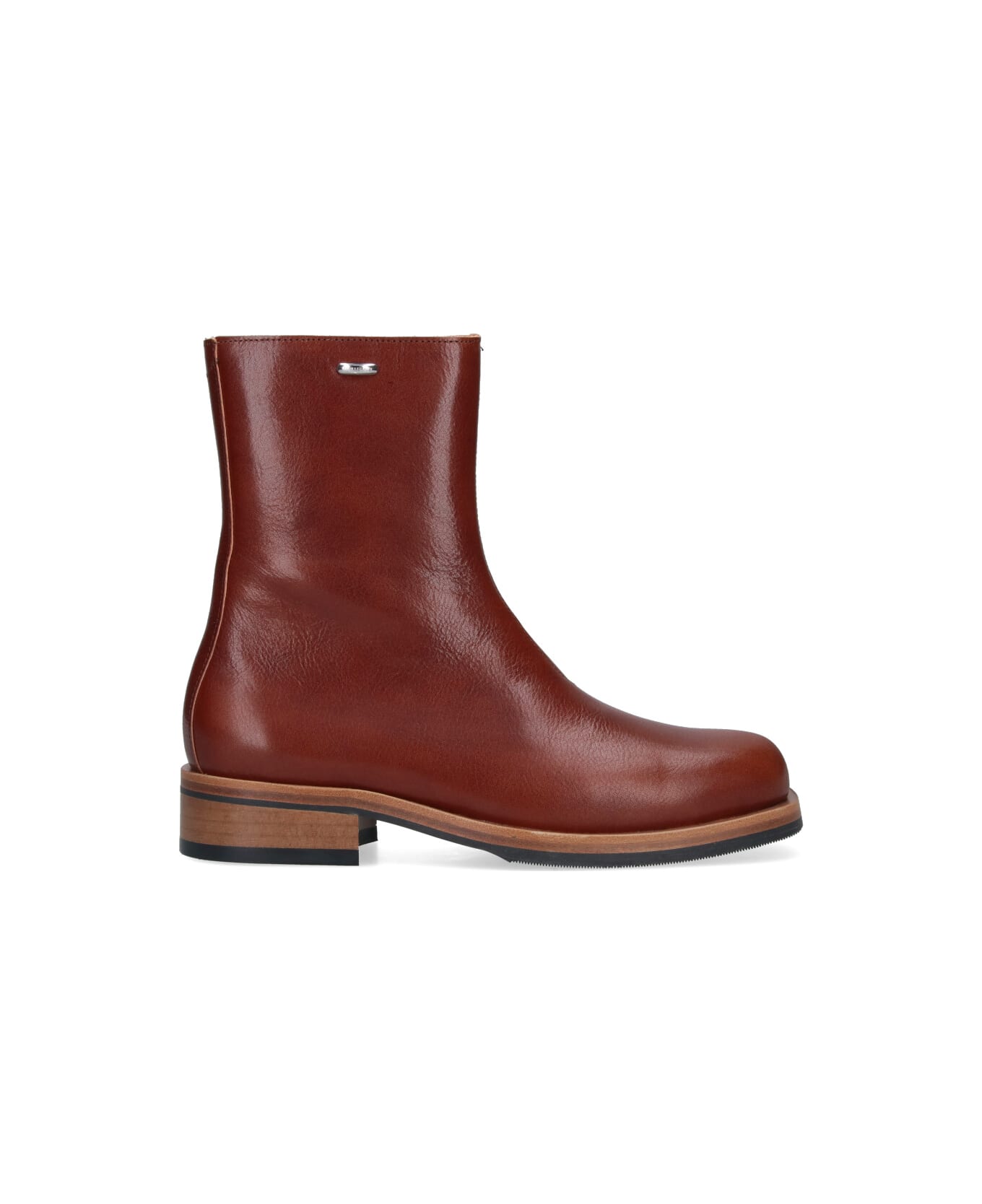 Our Legacy 'Camion' ankle boots in light brown calf leather, embossed stitching details, round toe, silver side logo tag, side zip closure, rubber sole. Composition: 100% Calf Leather
