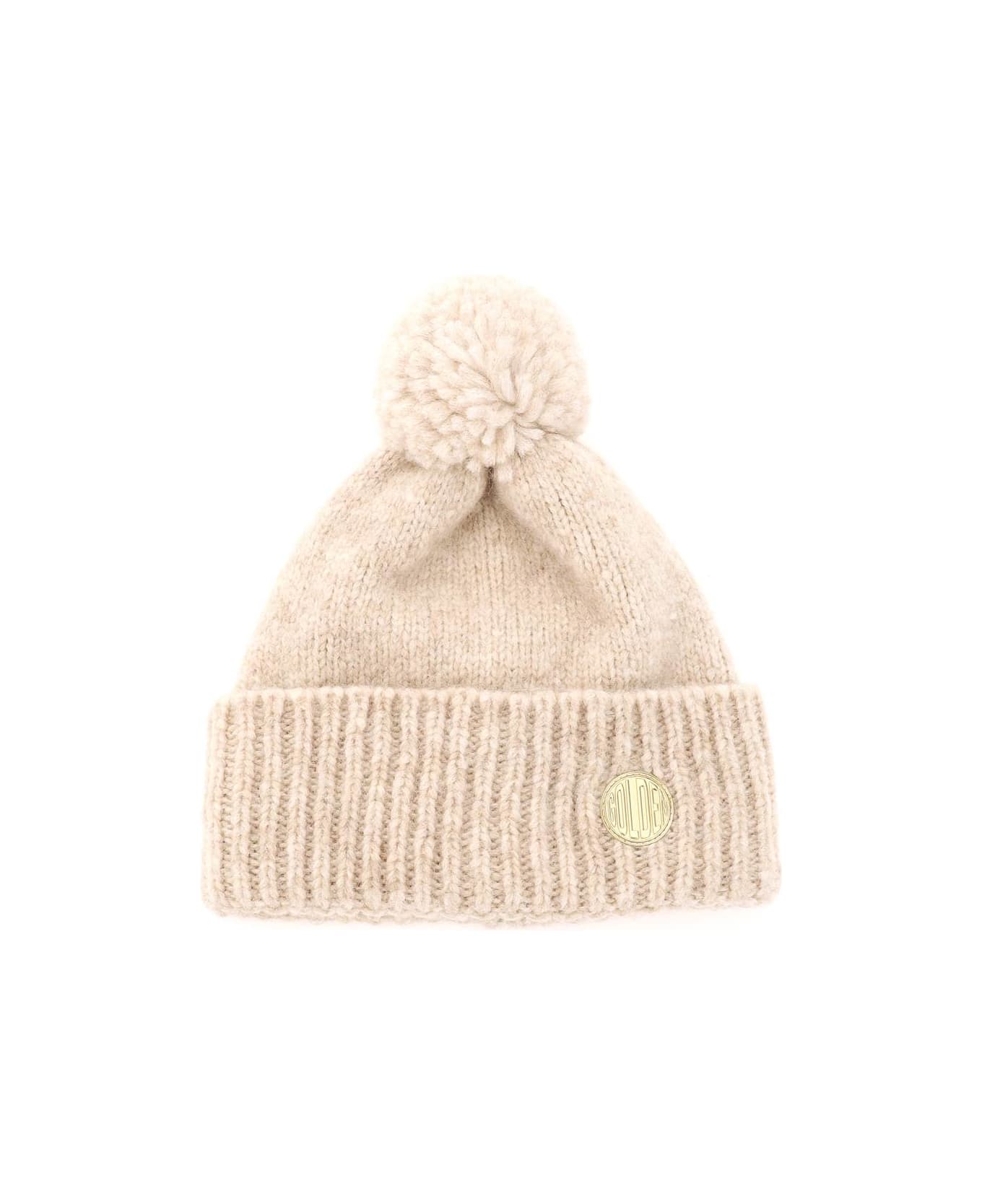 Golden Goose pompom hat in soft alpaca blend yarn, enriched by ribbed cuff with logo appliqué.