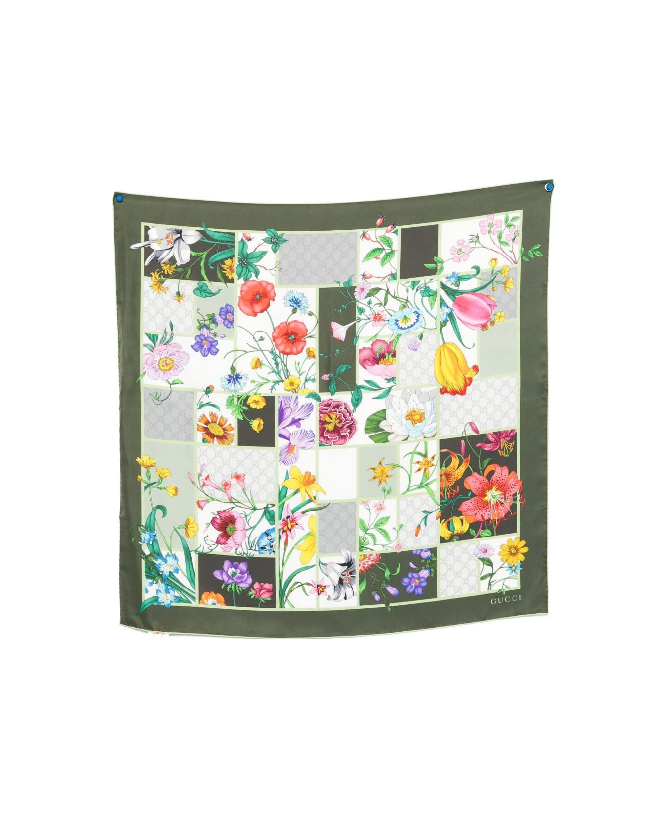 blue and green floral print square shape Composition: 100% Silk Fabric