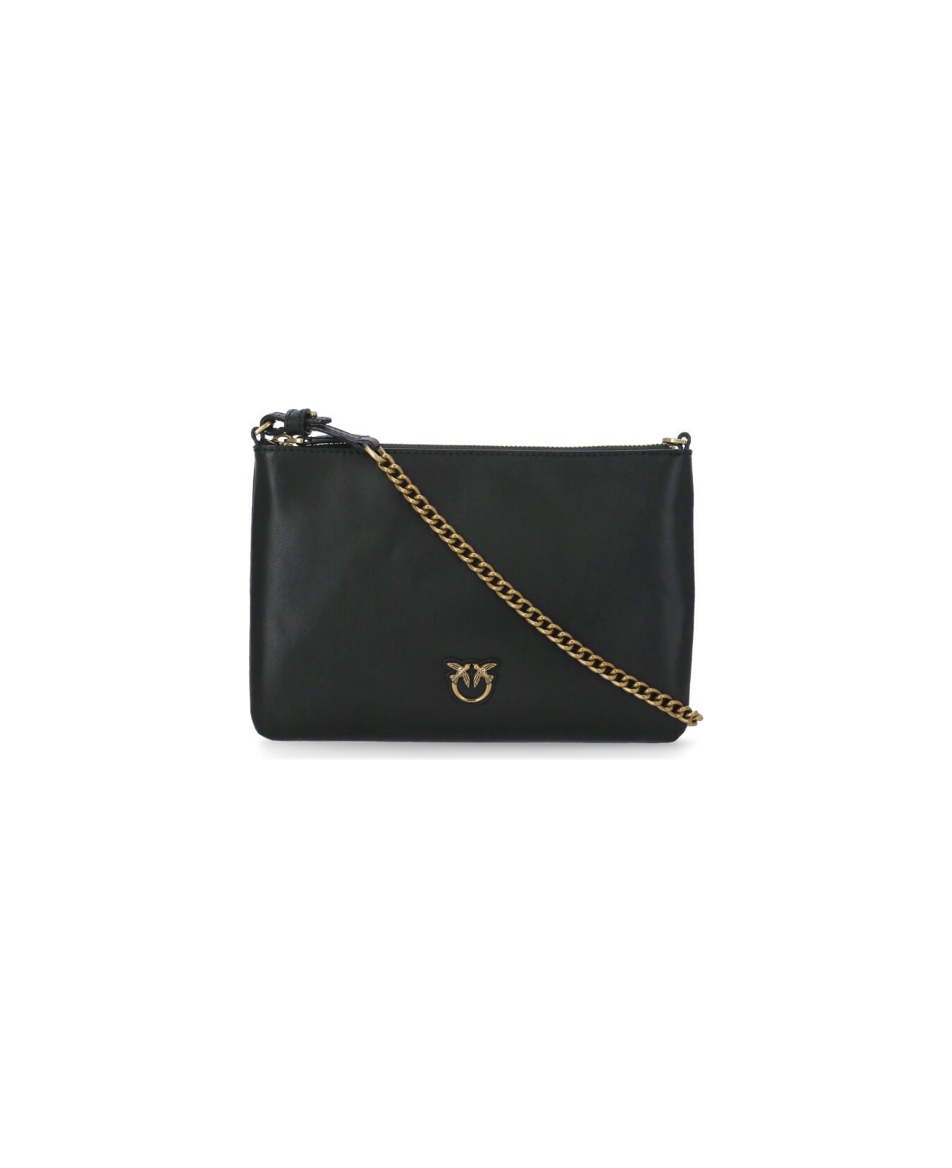 Flat Classic Pochette from Pinko: - Black Pinko smooth leather pochette for woman - One main compartment with zip fastening - Front metal logo - Two internal pockets - Removable shoulder strap included