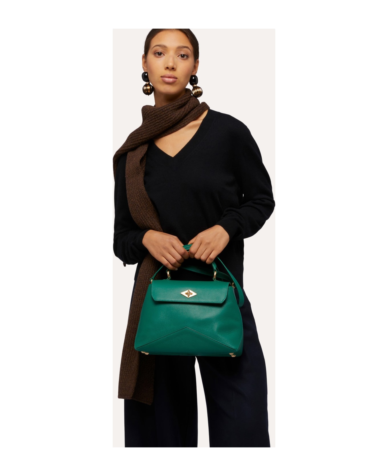 The Diamond Bag S is crafted from small grain calf leather. The iconic model is beautified with satin gold details that recall the shape of classic diamond. The interior is in suede-effect fabric with pockets for extra comfort. The bag has an adjustable, removable leather shoulder strap and handle. Dust bag included.