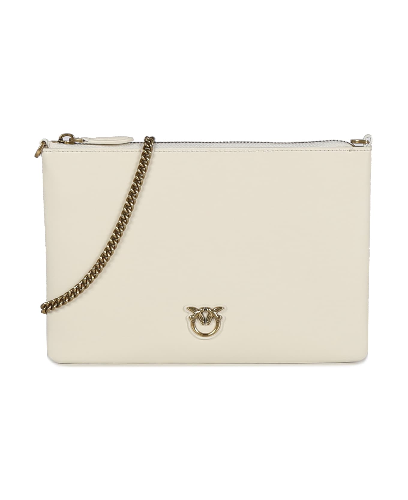 White-antique gold Shoulder Bag With Logo Plaque from Pinko -Pinko women's bag Front logo -Closure with zip -Internal compartment with two pockets -Pocket with zip closure -Removable chain -Measurements: 16x24x2 cm -Colour: White -100% Cowskin