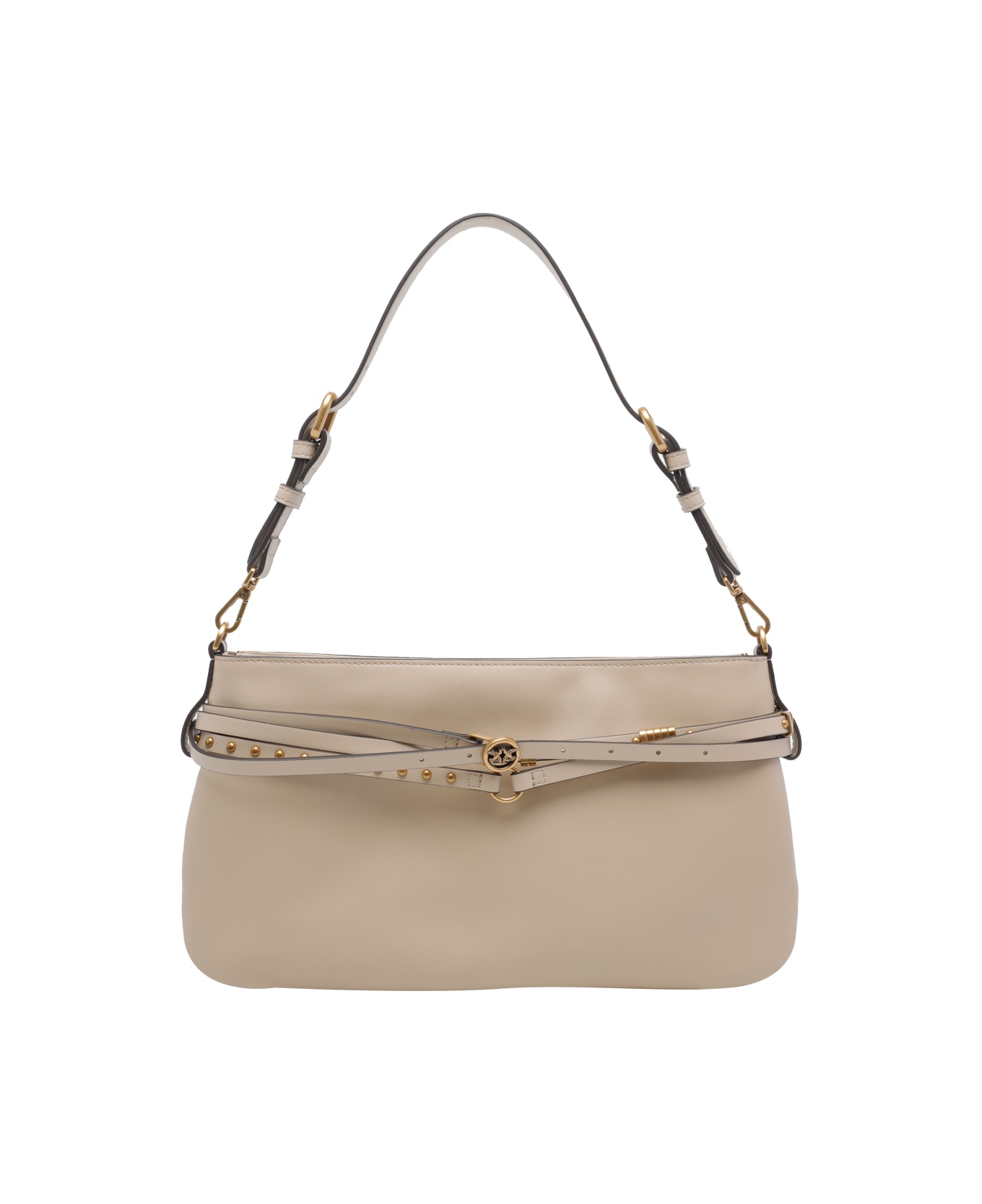 Pinko beige Classic shoulder bag, zip closure, 2 inner open pockets, zipped pocket, shoulder strap, removable strap, frontal golden logo Composition: 100% Calf Leather