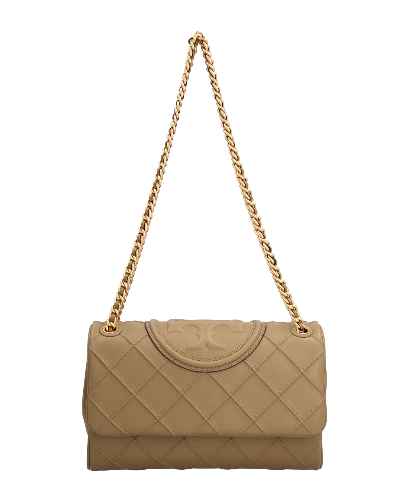 Fleming' decorated and suede leather shoulder bag with logo on the upper part, magnetic closure, chain and leather handles.