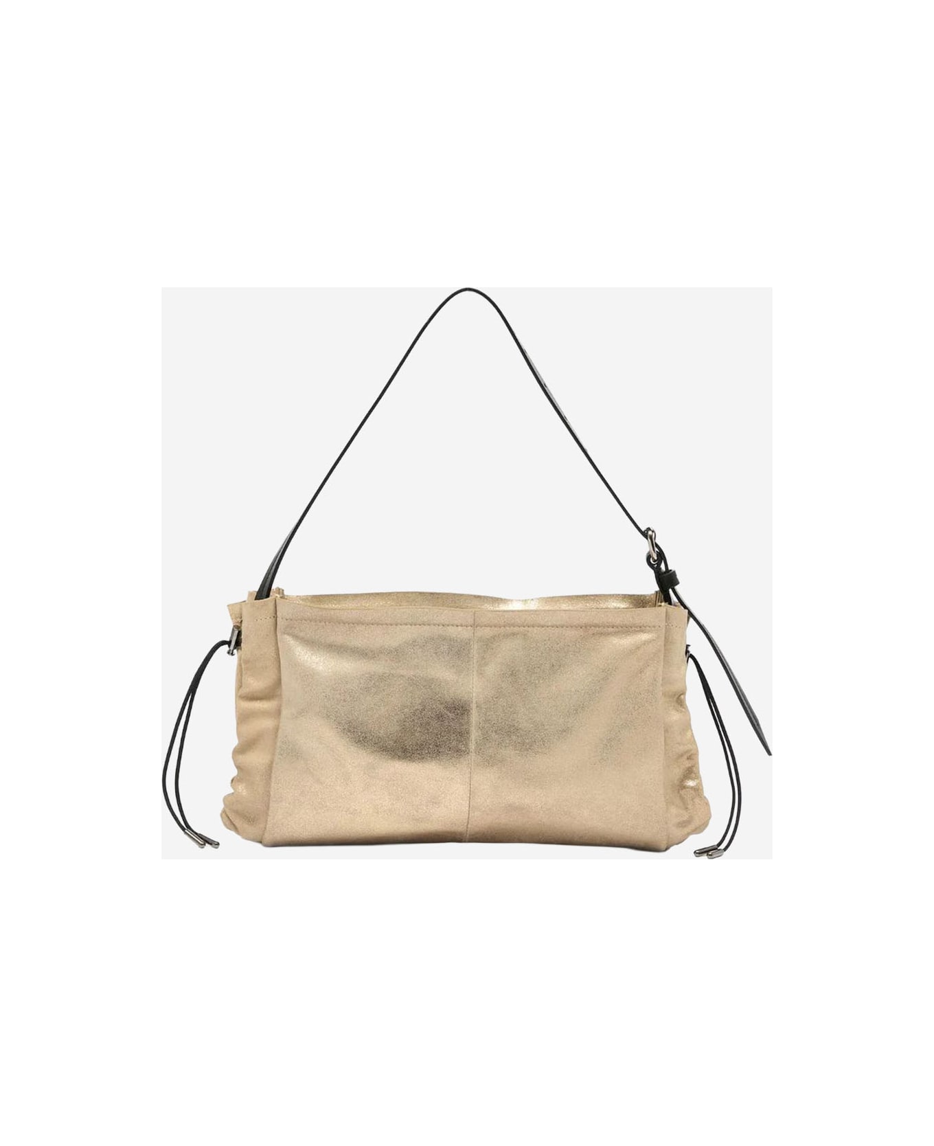 Bag made of cowhide leather One adjustable shoulder strap Top zip closure Adjustable drawstring edges for a gathered effect Gold colour Made in Italy Composition: 100% leather
