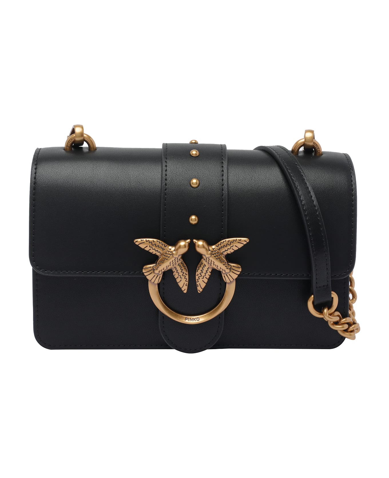 Pinko black Mini Love One crossbody bag, magnetic closure, 2 sections, zipped pocket, frontal golden logo, adaptable and removable chain strap Composition: 100% Calf Leather