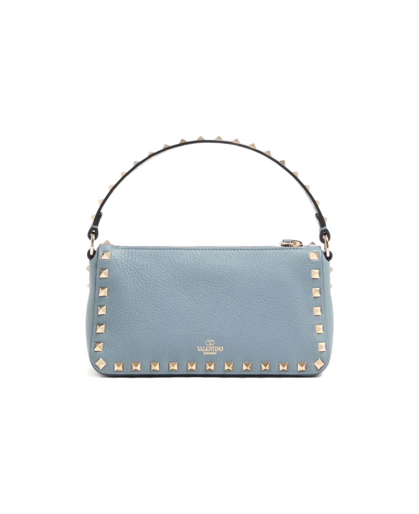 Valentino bag light blue gold-tone studs top zip fastening hook closure removable shoulder strap internal card slot The full look includes Valentino Garavani accessories. Composition: Calf Leather, 100%