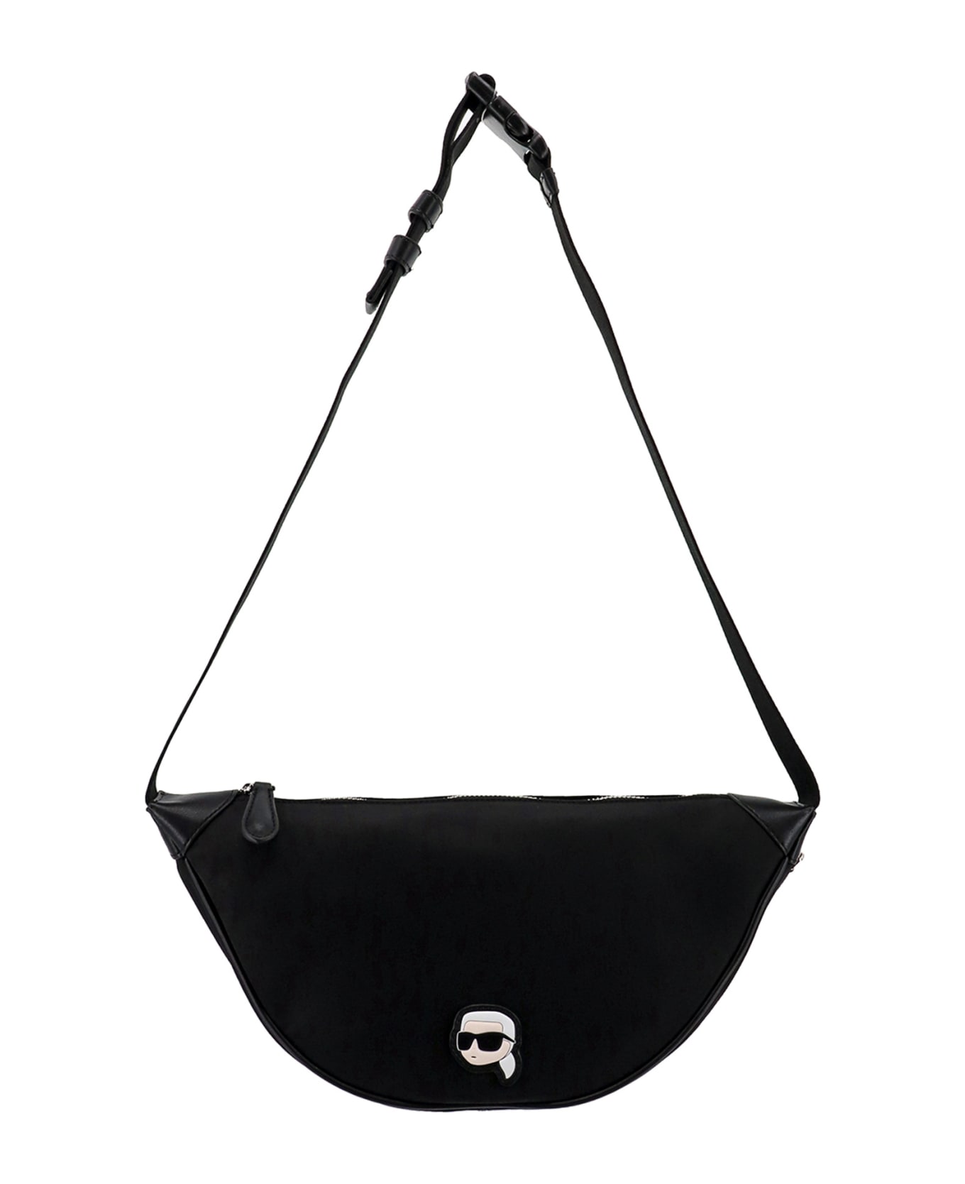 Recycled nylon shoulder bag with iconic frontal Karl