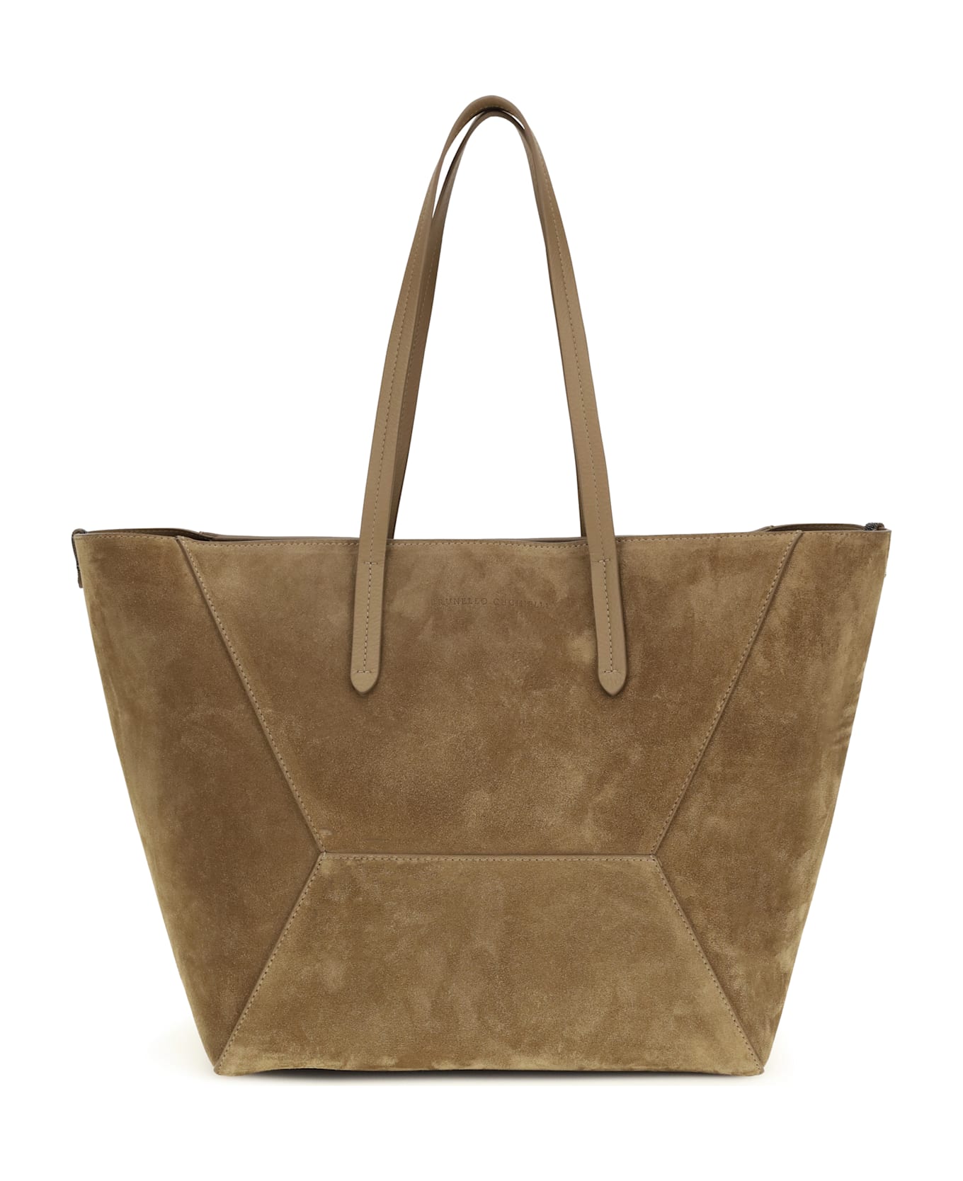 The suede bc tote bag by brunello cucinelli features a zip closure, double handles, and a removable internal pouch with zip. embellished with a refined nickel-free metal decoration, it combines elegance and practicality, making it a sophisticated accessory ideal for completing everyday looks with style.