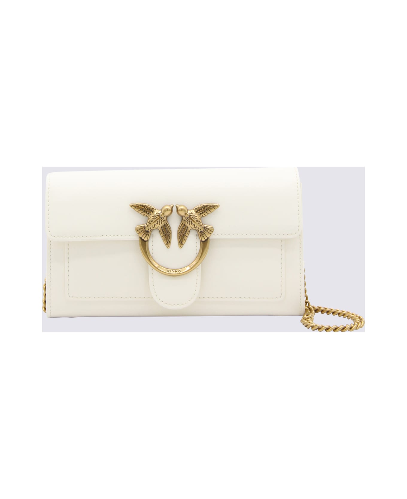White leather love bag shoulder bag from Pinko featuring button fastening, frontal gold tone logo, chain and inside pockets.