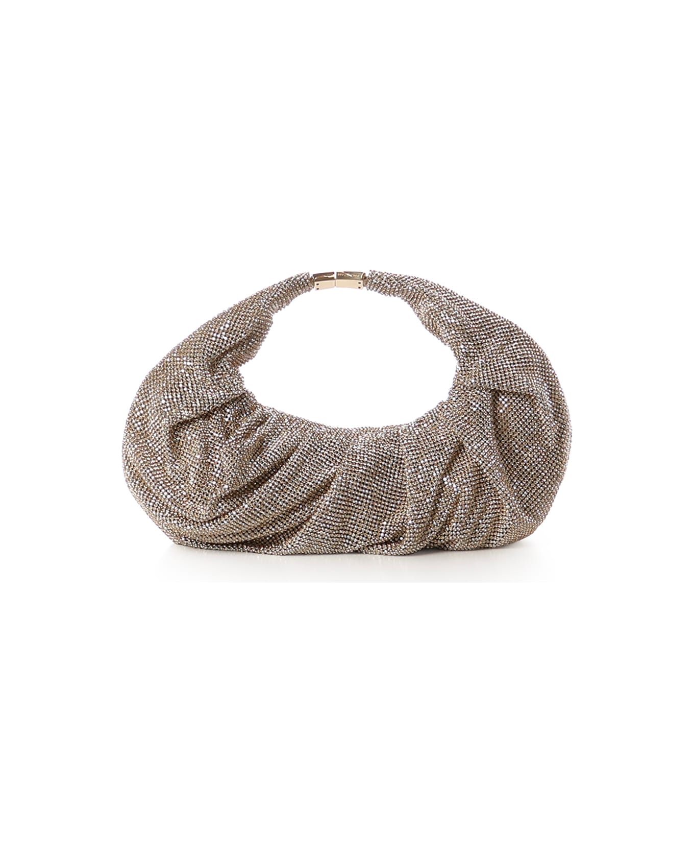 - Made of aluminum mesh studded with crystal rhinestones - Silk satin lining - Dimensions: 26 x 24 x 4 cm - Made in Italy - Designer color: Crazy Diamond
