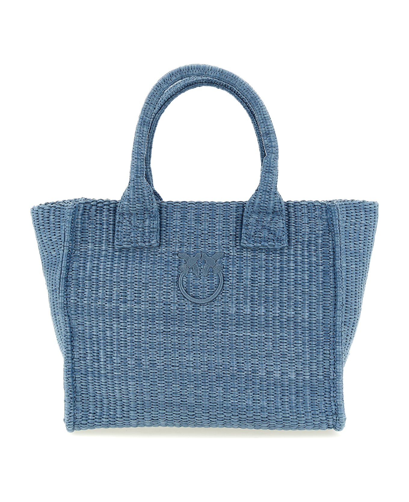 'Beach' mini shopping bag in woven raffia with tonal 'Love Birds Diamond' embroidery on the front, double fixed tubular handle, top zip closure, lining, two inner pockets. Handcrafted product, any imperfections are to be considered characteristics of uniqueness.
