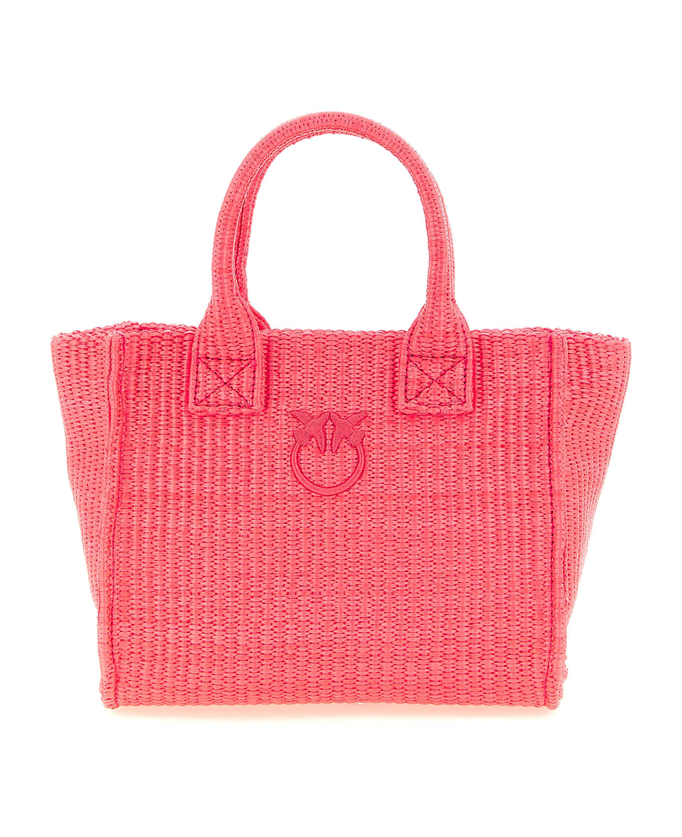 'Beach' mini shopping bag in woven raffia with tonal 'Love Birds Diamond' embroidery on the front, double fixed tubular handle, top zip closure, lining, two inner pockets. Handcrafted product, any imperfections are to be considered characteristics of uniqueness.
