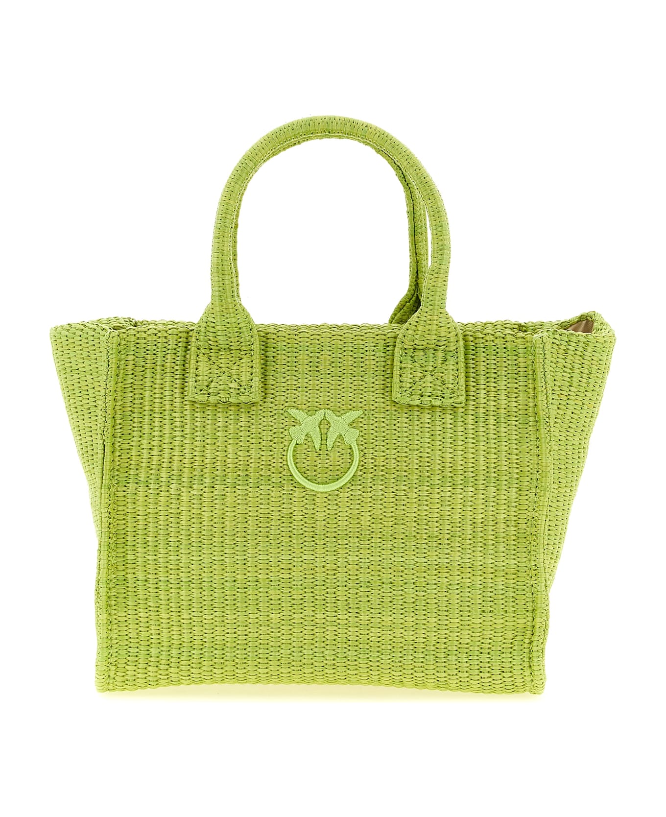 'Beach' mini shopping bag in woven raffia with tonal 'Love Birds Diamond' embroidery on the front, double fixed tubular handle, top zip closure, lining, two inner pockets. Handcrafted product, any imperfections are to be considered characteristics of uniqueness.