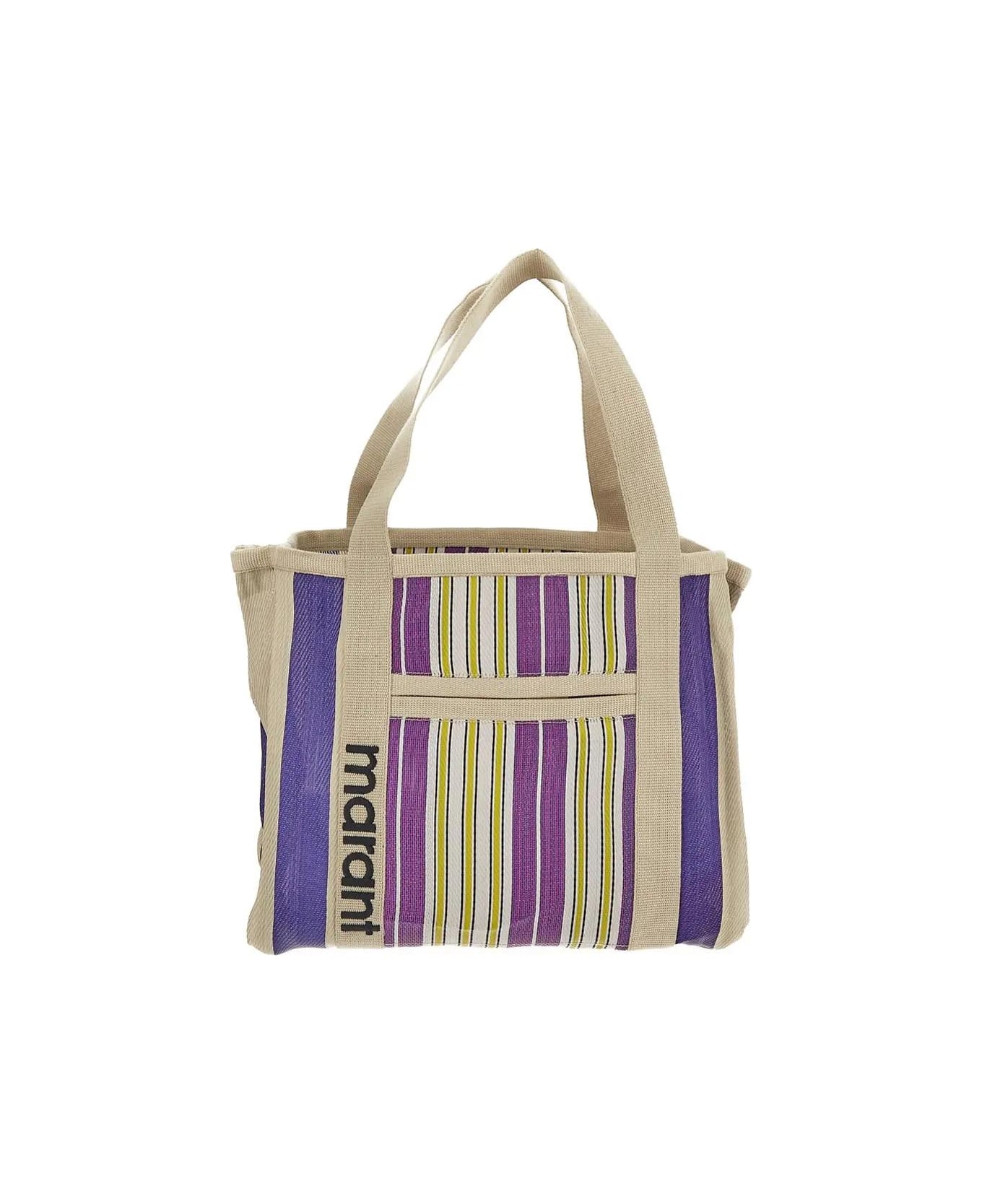 Isabel Marant tote bag in multicolor stripes polyester with embroidered black logo on one side, top handles, two external flat pockets, a main compartment and a zip pocket. Composition: 93% Polyester 7% Polypropylene