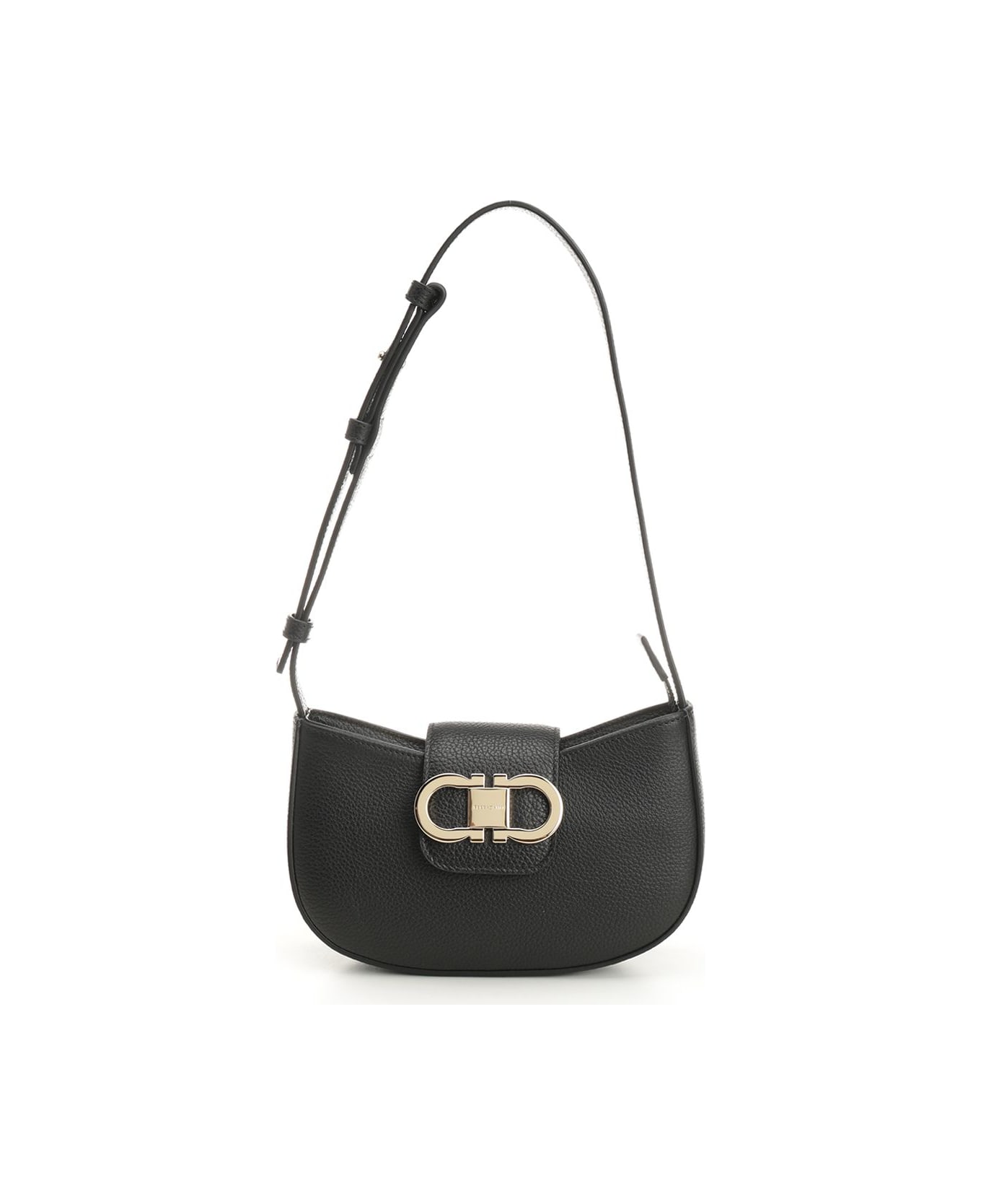'Double Gancini' mini bag in hammered calfskin by Ferragamo, with rounded shapes, zip opening and bridge decorated with the Gancini ornament, internally lined in leather, card and document slots and adjustable shoulder strap
