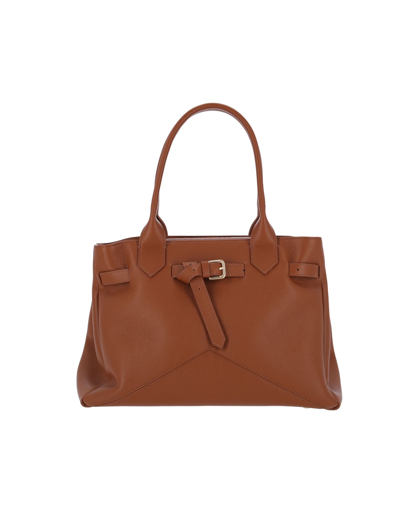 Ballantyne brown calf leather 'Kate 990' tote bag, two top handles, adjustable buckle detail at the front, magnetic button closure, inner zip pocket, main inner compartment.