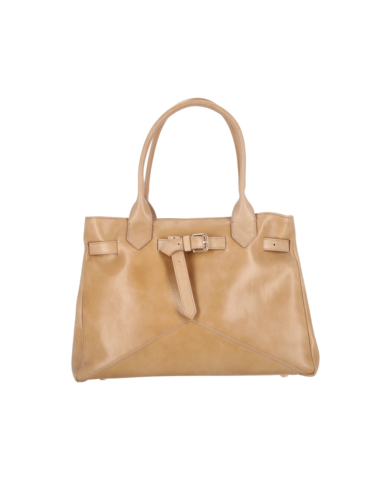 Kate 990 tote bag Ballantyne in beige calf leather, two top handles, adjustable buckle detail at the front, magnetic button closure, inner zip pocket, main inner compartment.