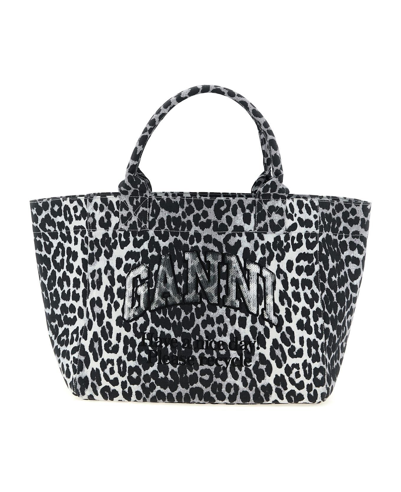 'Leopard Medium Tote' canvas shopping bag with embroidery with front sequin application, double fixed handle. SUSTAINABLE: This product is made with recycled cotton. Composition: 100% recycled cotton