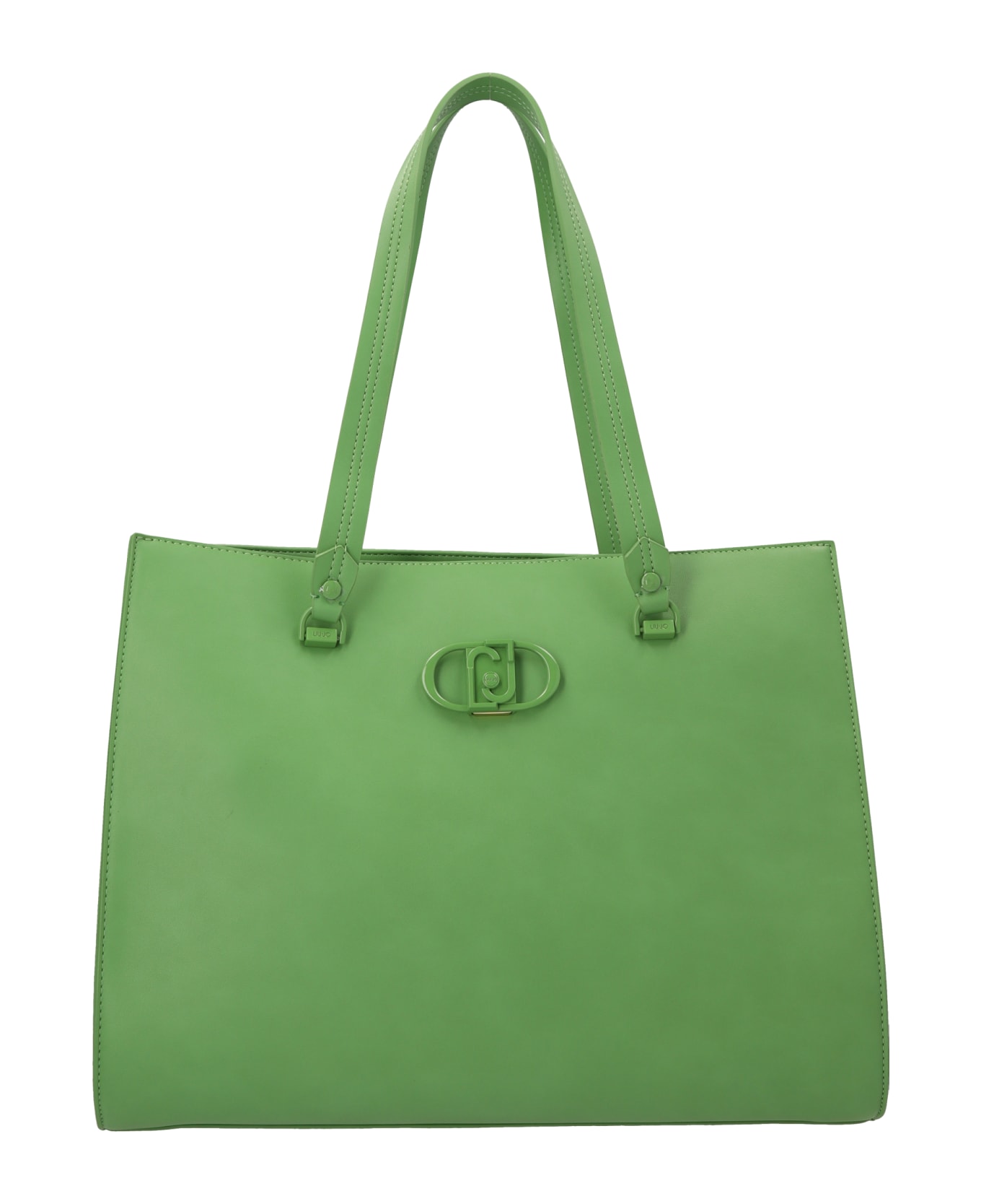 Ecs L' shopping bag in polyurethane with front tone-on-tone logo, zip closure and a double handle. : Sustainable product From Lute Jo Better.