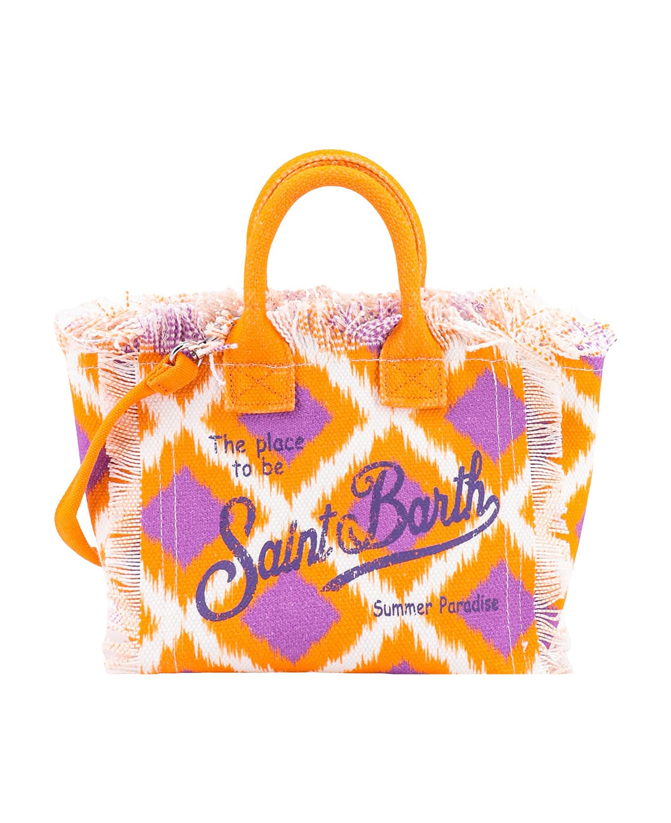 Canvas handbag with multicolor print and logo