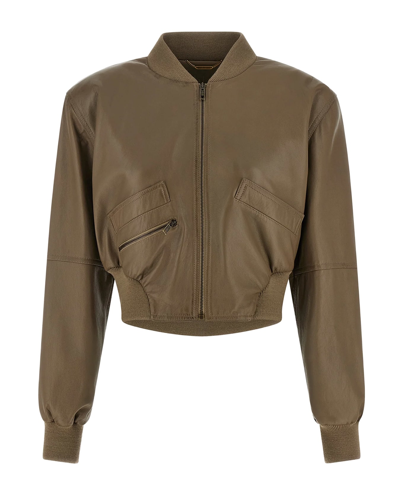 Zip closure Two front pockets Zip pocket Ribbed knit trim Made in Italy Leather Lining: 100% cupro SKU: CH26SCV8220023T