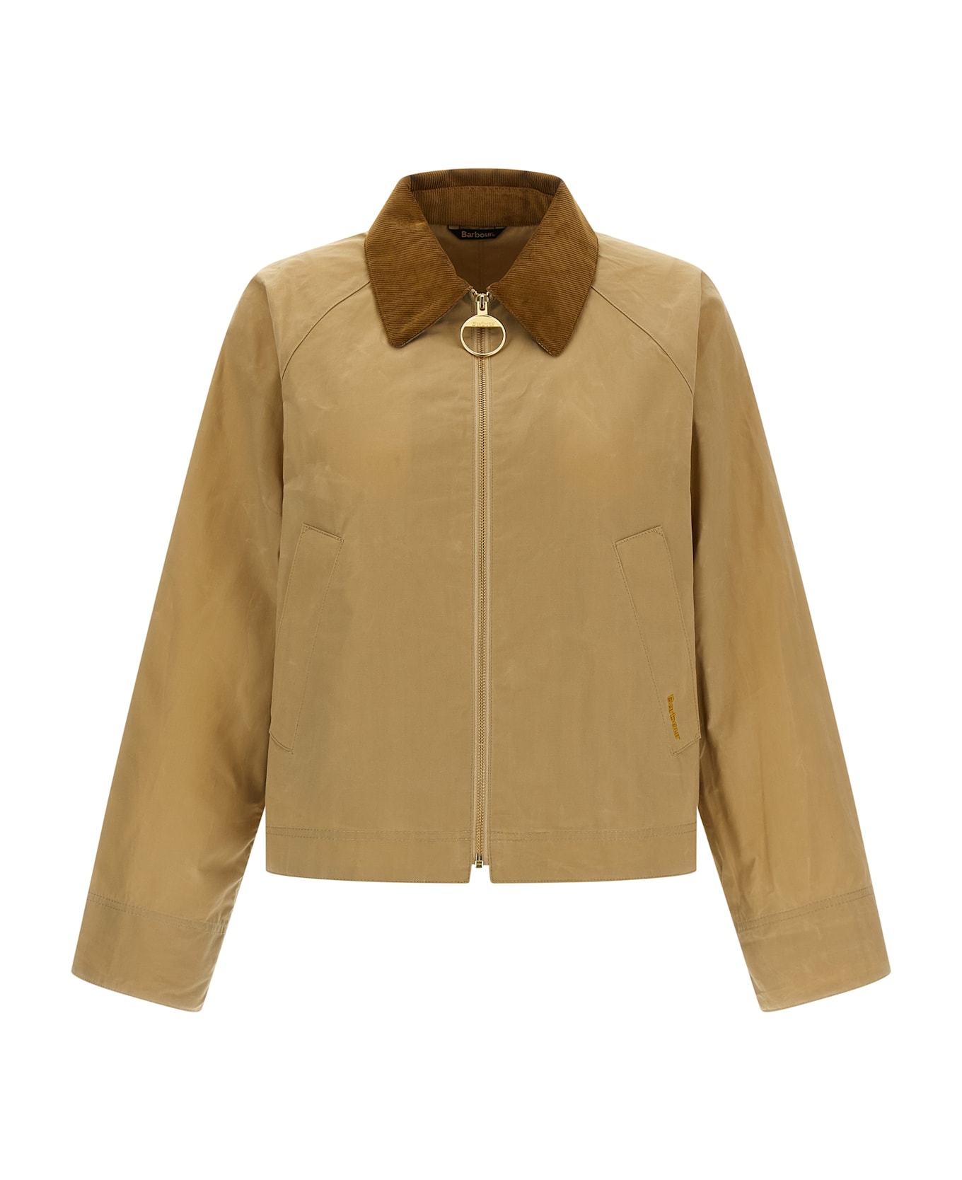 'Catlin' cotton jacket, unlined, slightly flared crop style, corduroy shirt collar, logo embroidery and front zip closure, welt pockets, long sleeves with foldable cuffs with tartan lining, deep inverted cannon crease at the back.