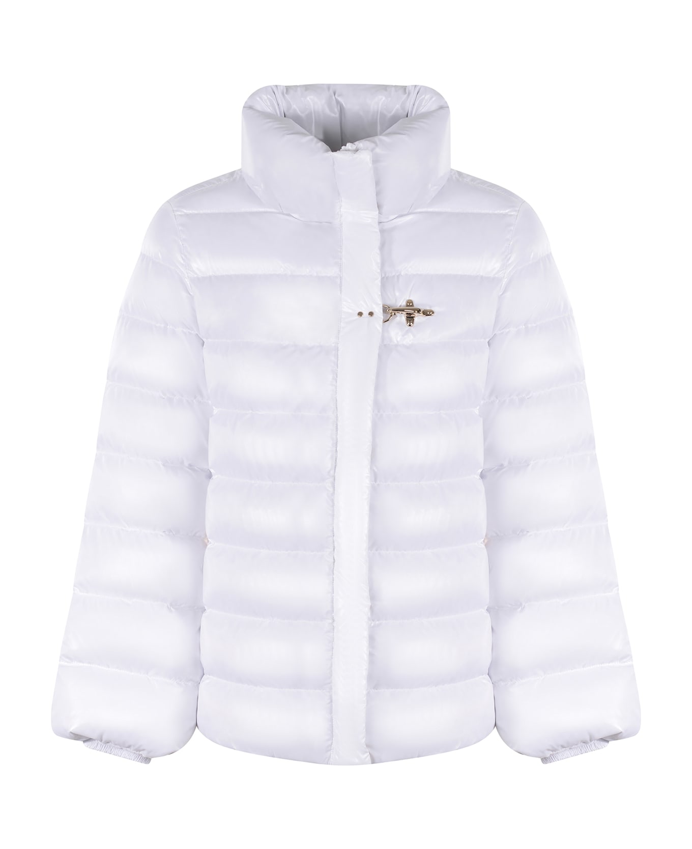 Cape Fay made of White nylon. Lightweight downproof and water-repellent nylon. Striped quilting. High collar. Hook and zip closure. Side pockets. Regular fit. Lining 100% Polyamide Padding 90% down, 10% feathers 100% polyamide