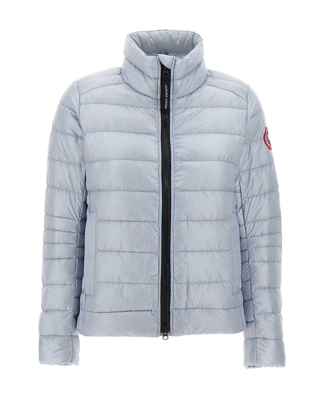 Canada Goose 'Cypress' woman down jacket, light gray color, light quilting, front zip fastening, two side pockets with zip, iconic logo patch on sleeve, two inside pockets, one with a special case, internal logoed shoulder straps, ideal for season autumn and winter.