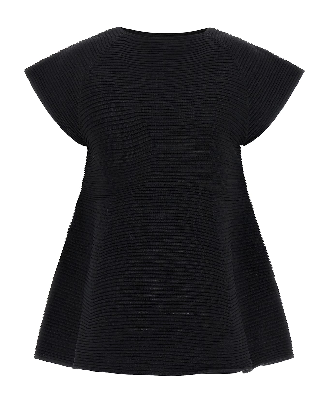 Mini 'Corrugated Knit' dress in ribbed fabric, hourglass silhouette with very flared skirt, crew neck, short sleeves.
