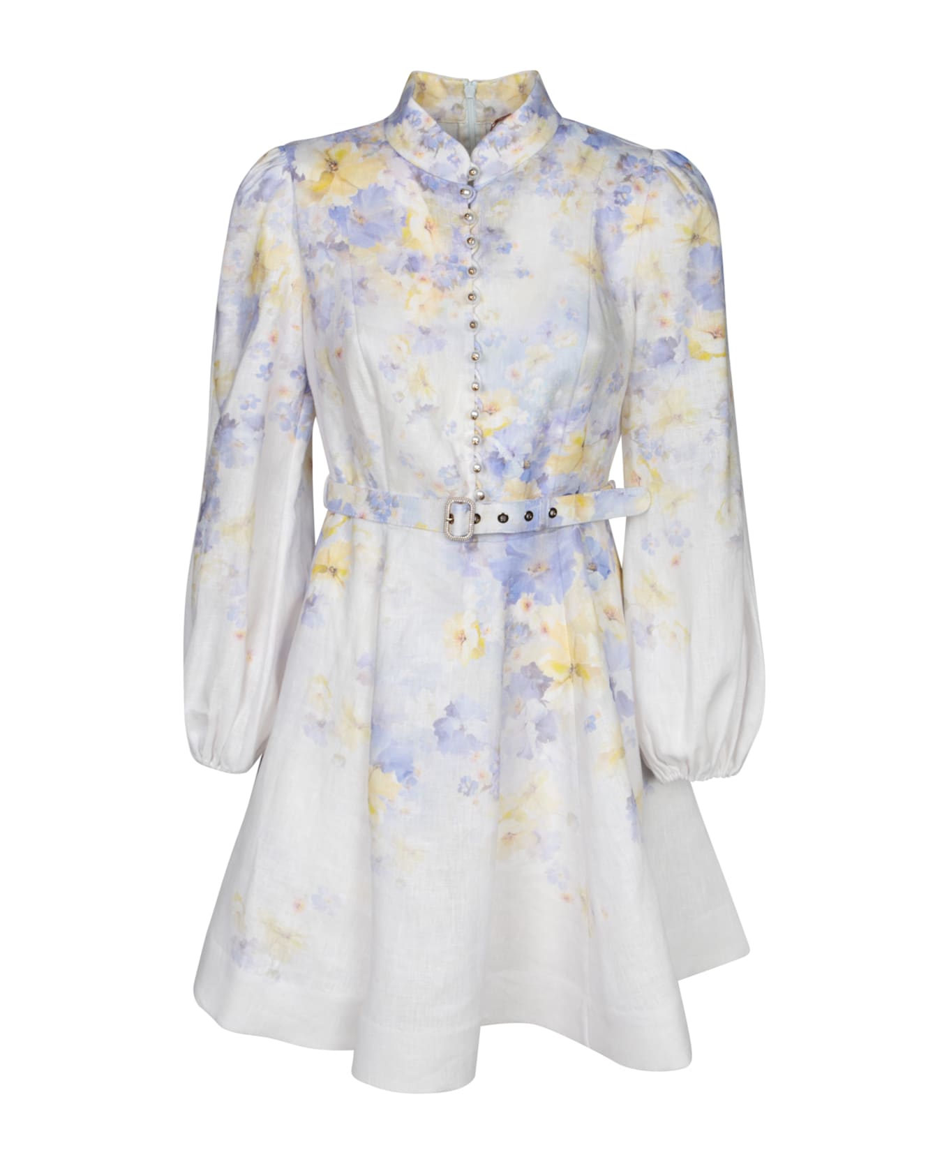 This airy and feminine Zimmermann dress features a delicate and vibrant floral print, perfect for spring and summer occasions. It boasts a tapered silhouette that flatters the figure, finished with an elegant belt that defines the waist.
