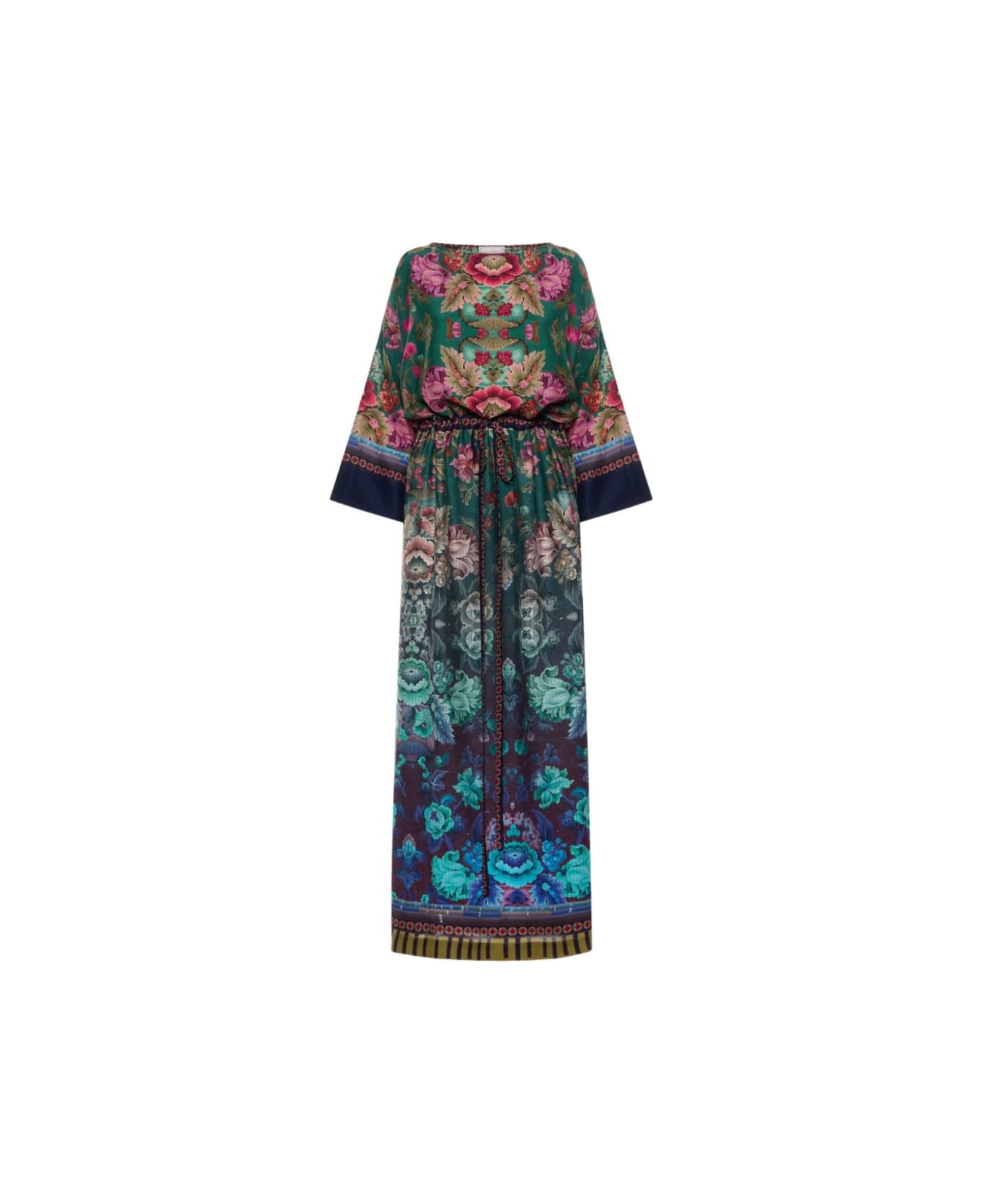 Green/multicolour, floral print, belt fastening, wide sleeves, round neck