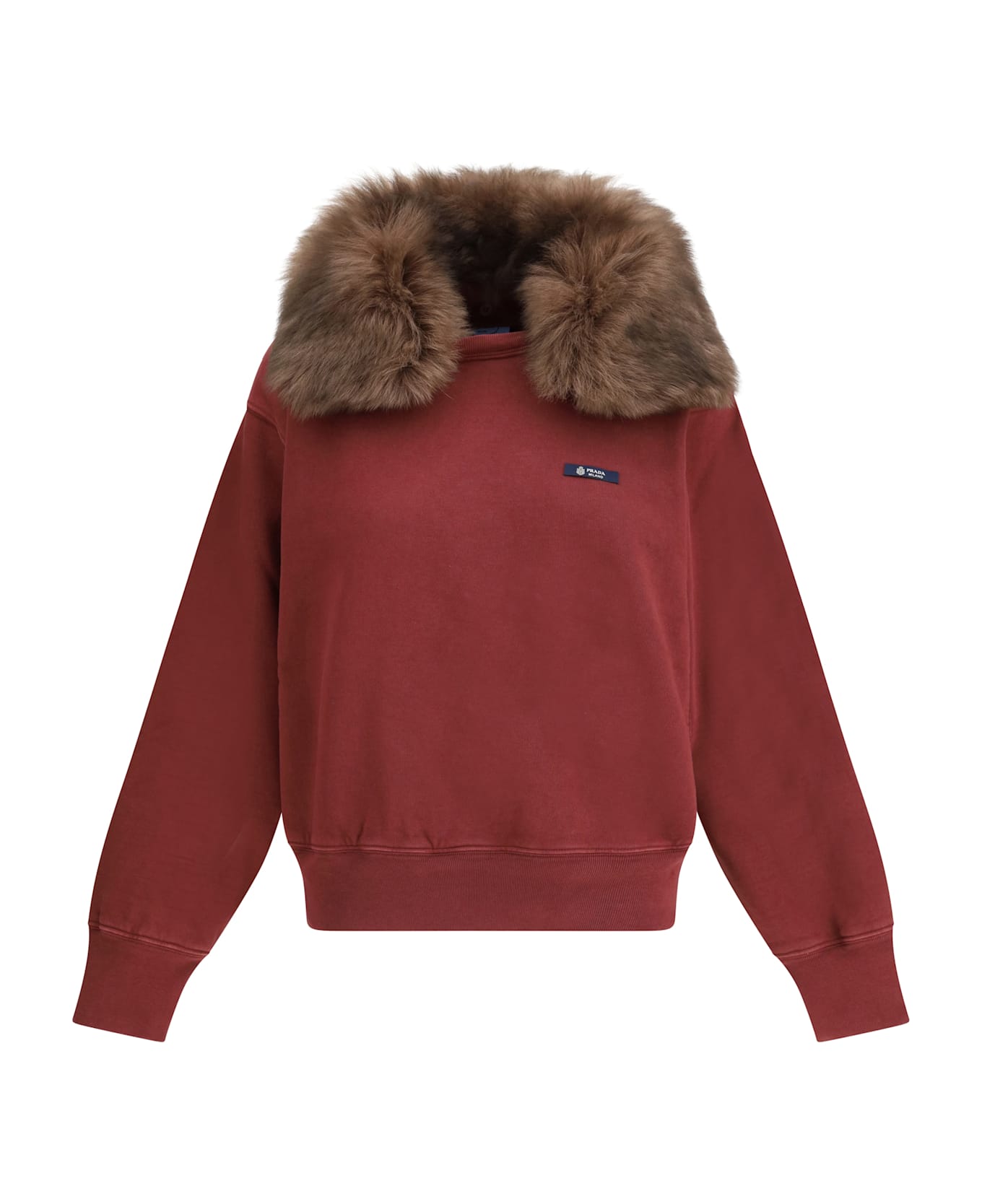 The sweatshirt by prada is an oversized, closed design with no zips or buttons, featuring a soft shearling collar that adds warmth and a luxurious touch to its minimalist aesthetic. crafted in a roomy, contemporary silhouette, it is finished with a prada logo label applied on the left side of the chest, offering a refined and distinctive detail. Composition: 100% % Cotton