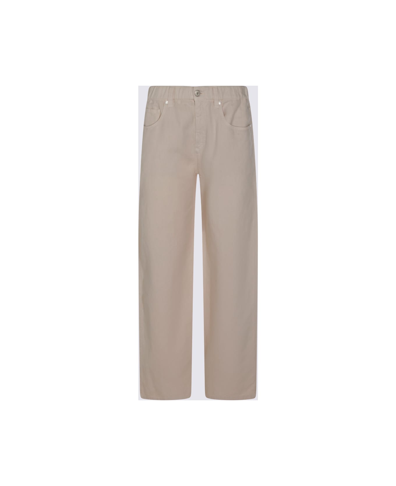 Beige cotton jeans from Brunello Cucinelli featuring high waist, elasticized belt, belt loops, button and zip fastening, five-pockets, wide leg and relaxed fit. Composition: _, 60% Cotton, 40% Linen