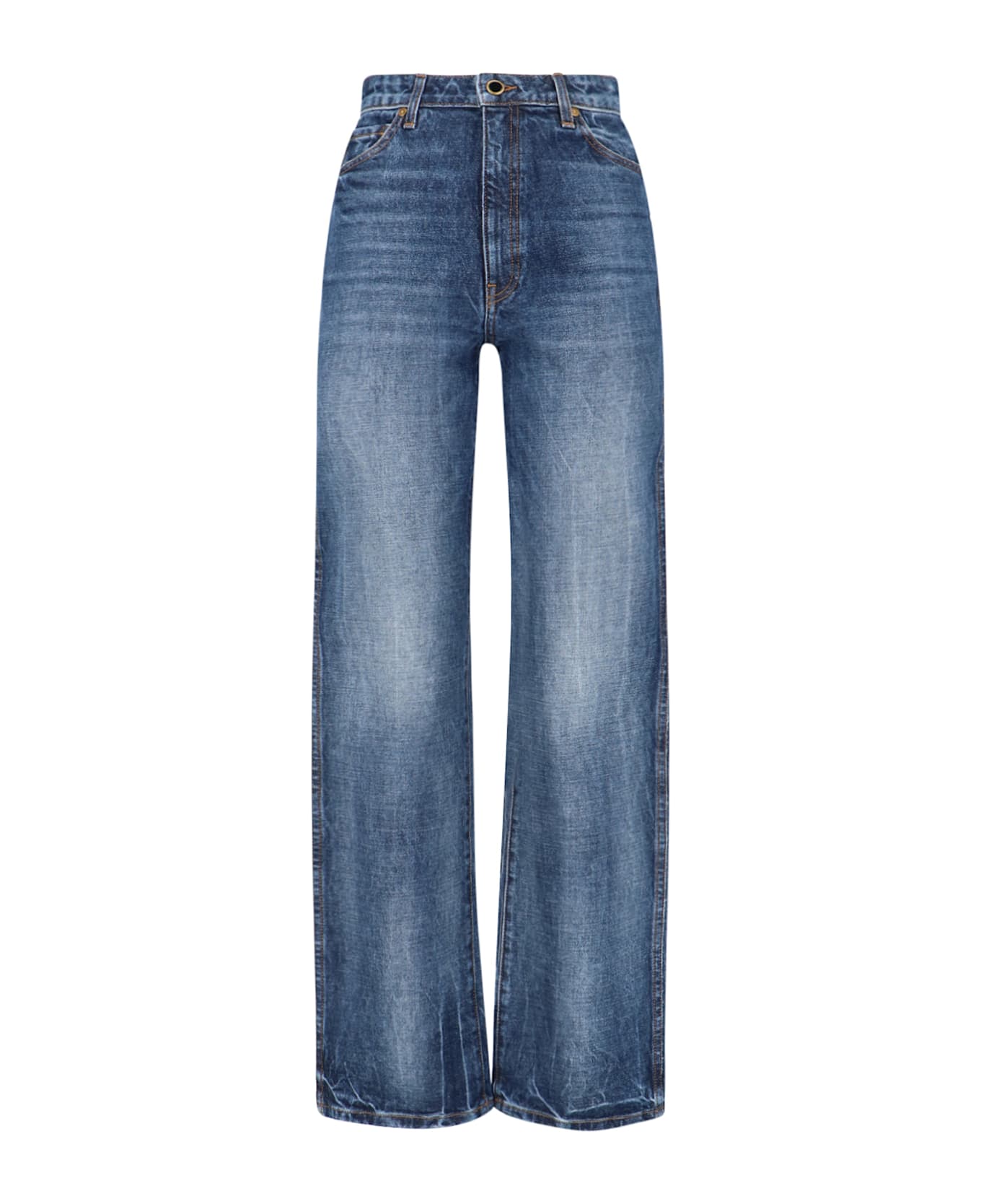 Khaite blue cotton denim Danielle jeans with distressed effect, high waist, button and belt closure, five pockets, straight leg. Composition: 98% Cotton, 2% Elastane