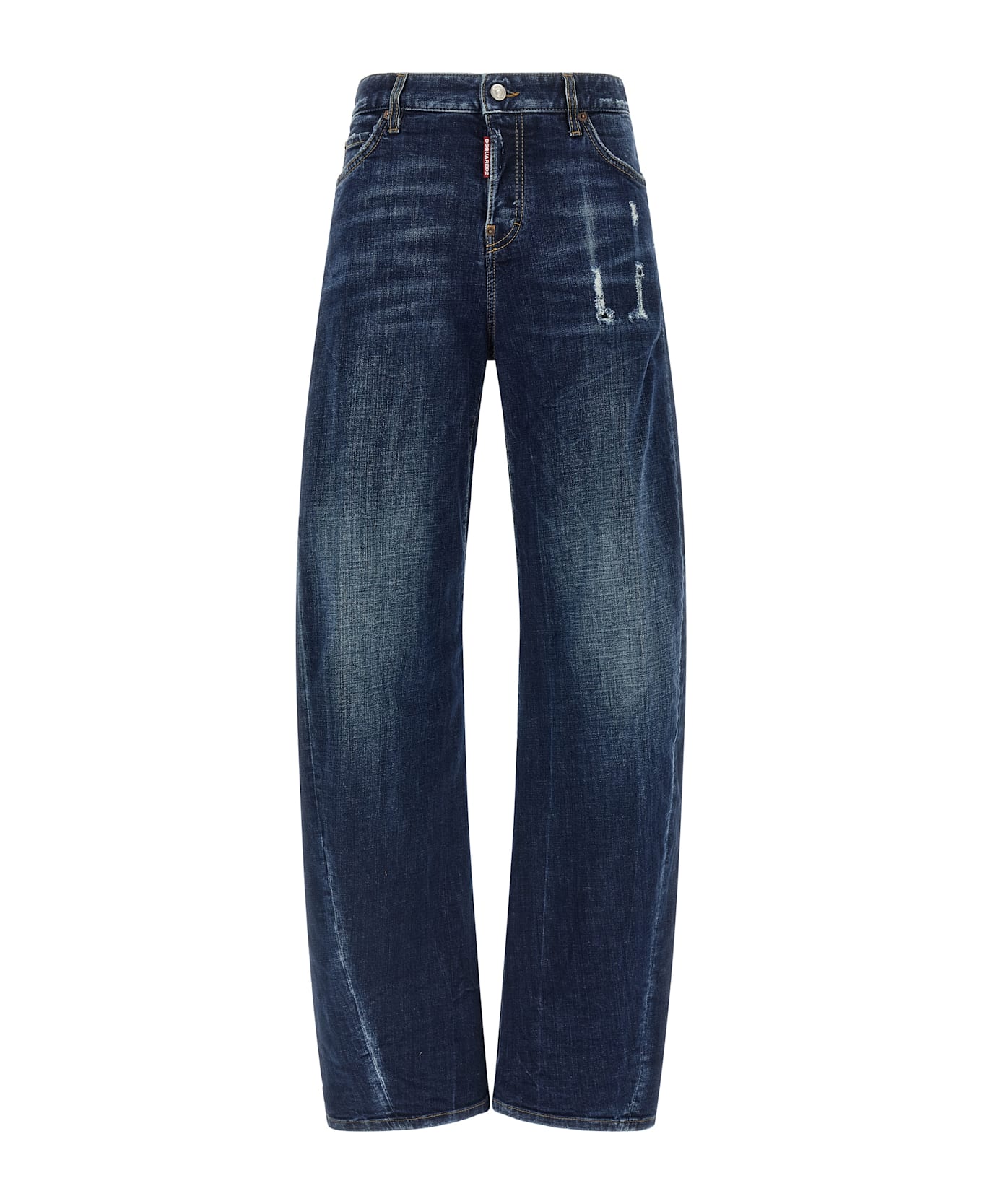 'Loose twst jeans' jeans in slightly stretch cotton denim with destroyed effect details, 5-pocket style with buttons, curved stitching, front logo on the flap.