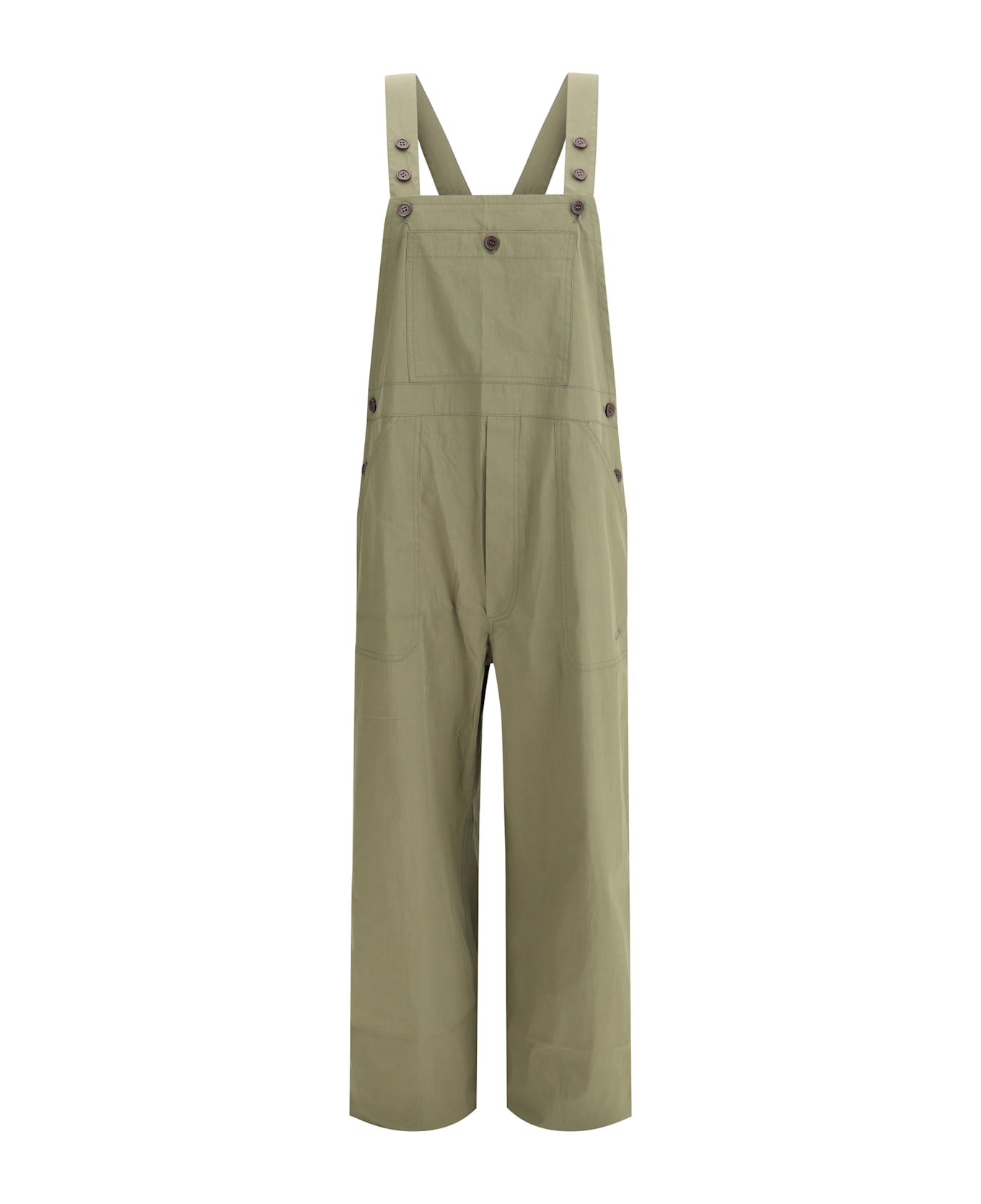 P. a. r. o. s. h. 's ninja cotton dungarees are a casual and practical style perfect for a relaxed yet polished look. featuring a wide leg for comfort and freedom of movement, it has two front patch pockets for a functional and trendy touch. adjustable buttoned suspenders allow you to customize the fit, while a front patch pocket completes the design with an additional practical detail. a versatile and fashionable piece ideal for an easy-chic look.