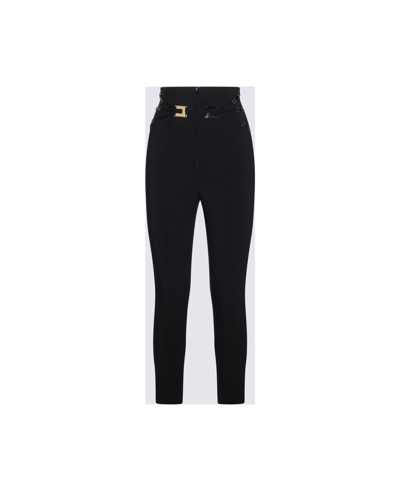 Black pant from Elisabetta Franchi featuring frontal zip fastening, gold metal hardware and regular vestibility.