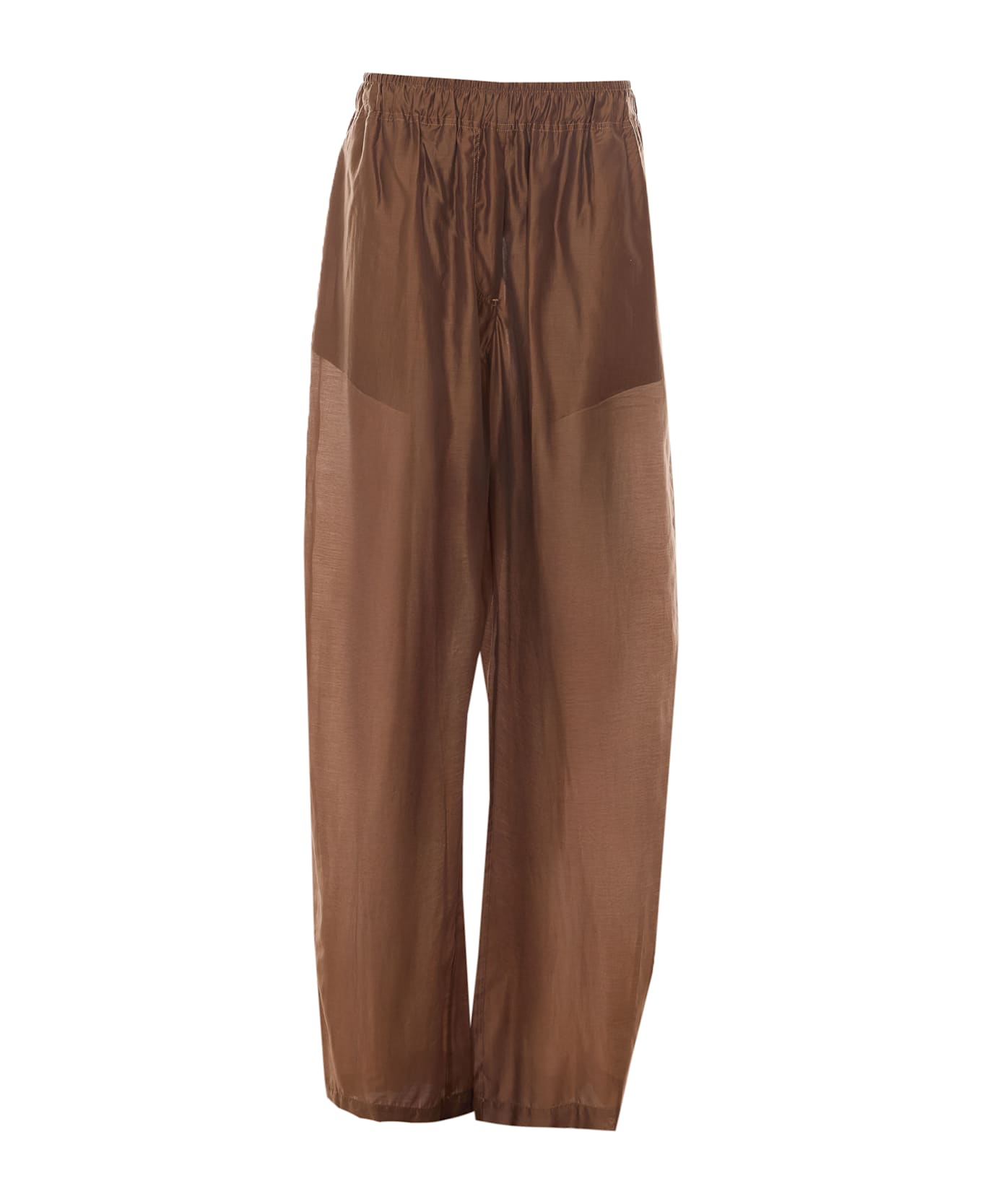 The Latest chocolate brown Dora pants, elasticized closure, trasparent effect, frontal and back closure