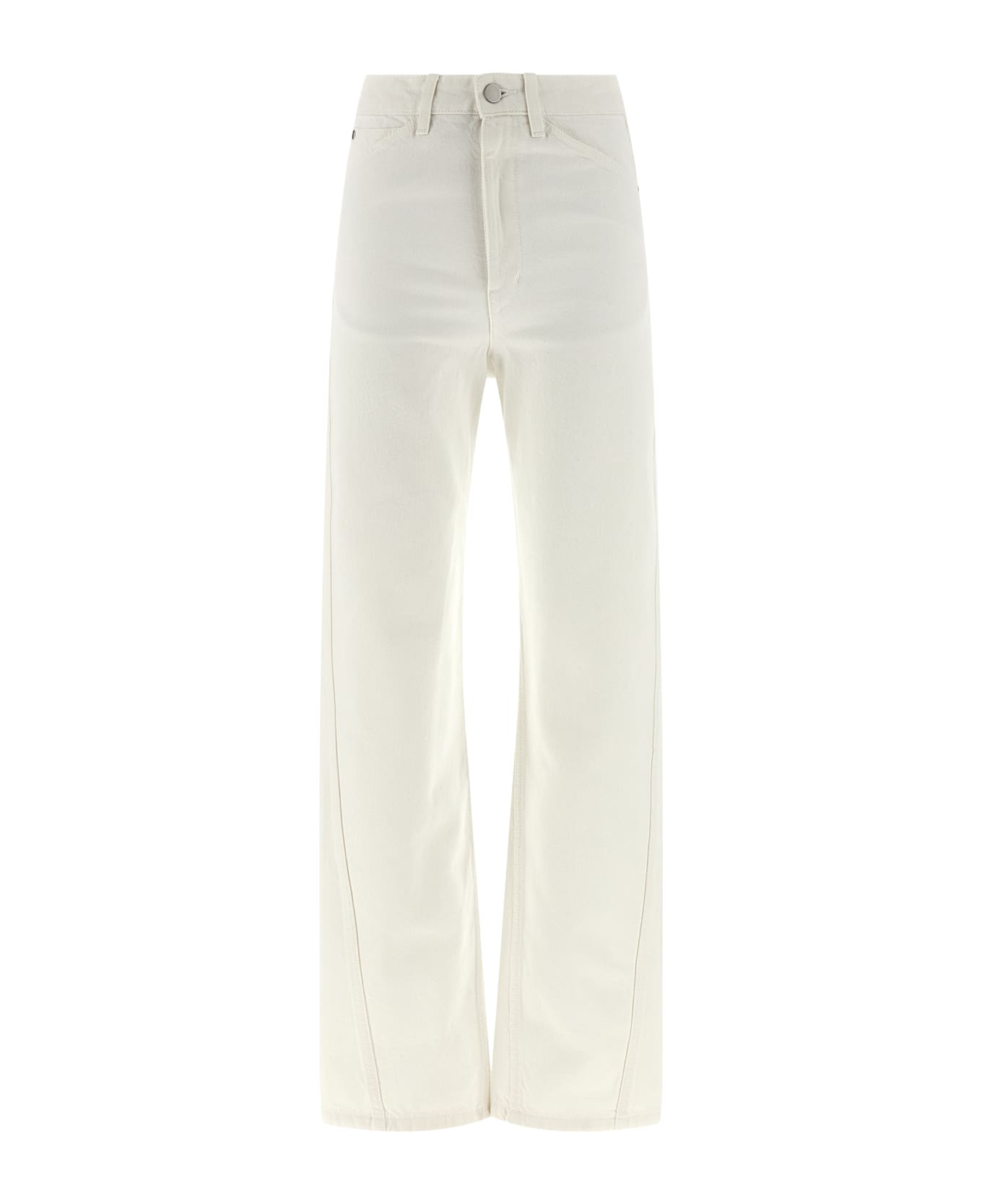 Cotton denim pants, high waist, straight leg with 'Twisted' stitching, front closure with metal button and hidden zip, side and back patch pockets, back leather logo patch. Composition: 100% cotton