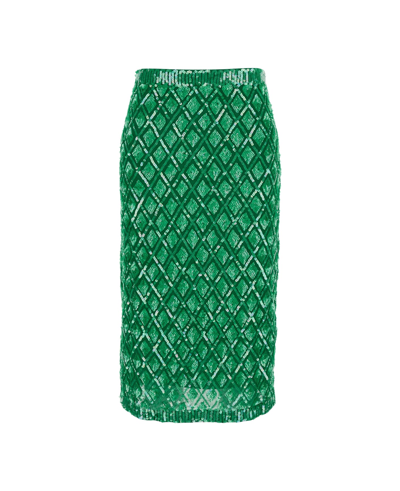 Skirt Green Elasticized waist All-over applied sequins Geometric motif Tech fabric Regular fit