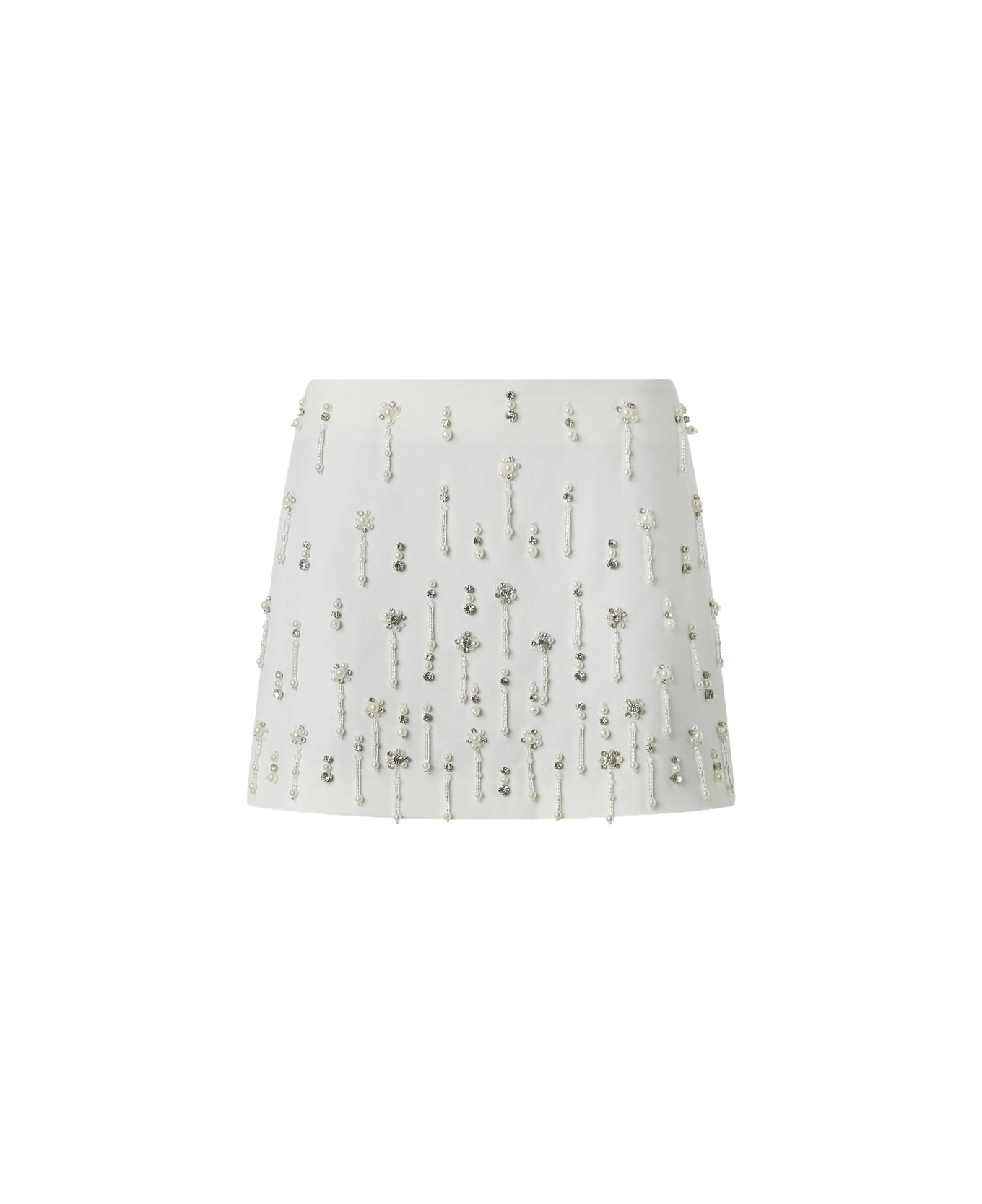 white beaded embellishment crystal embellishment concealed zip fastening straight hem