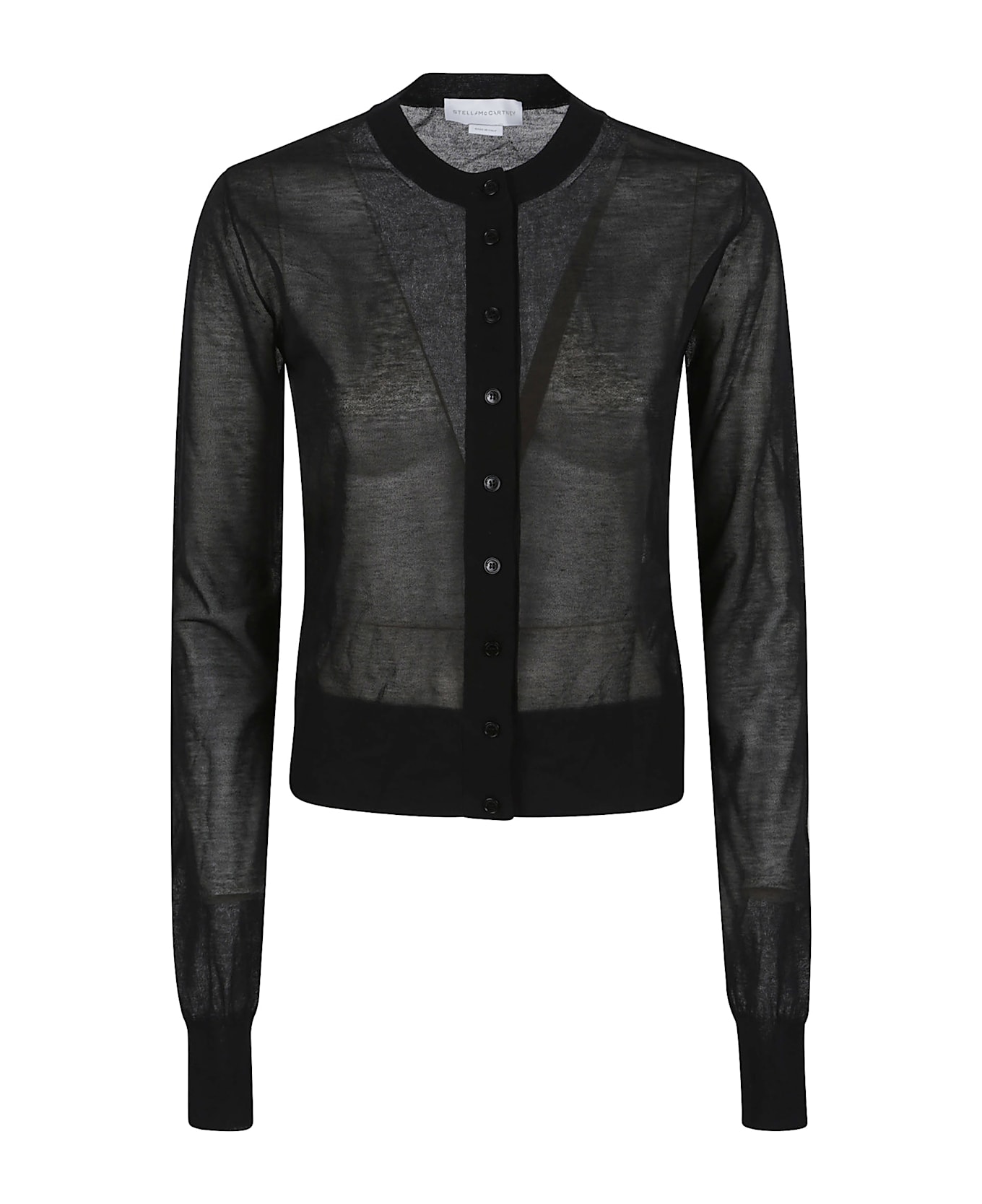 Cardigan in a soft stretch organic cotton blend by STELLA McCARTNEY. Crew neck; long sleeves; front button fastening; elasticated ribbed edges. Ultra-lightweight design.